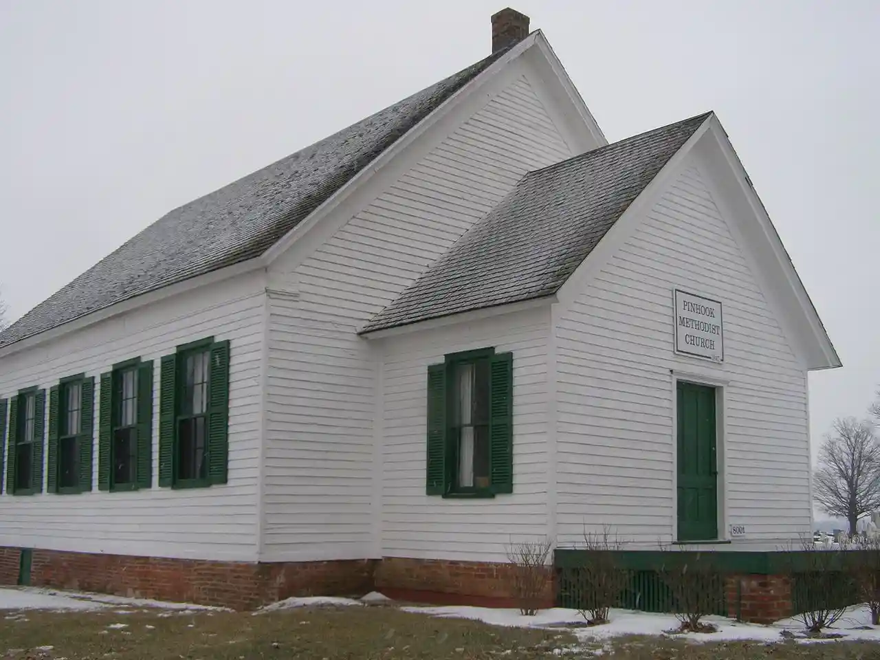 The Pinhook Methodist Church and Cemetery are located in New Durham Township, LaPorte County, Indiana at Wozniak Road with State Road 2. Known as the village of Pinhook, formerly New Durham. The village is mostly residential along the south side of State Road 2. The site includes the Pinhook Methodist Church (1847), the Pinhook Cemetery (1850), the cemetery storage shed (ca. 1900), and the old pump (ca. 1930). Note: This includes and Accompanying photographs. Read more on Wikipedia