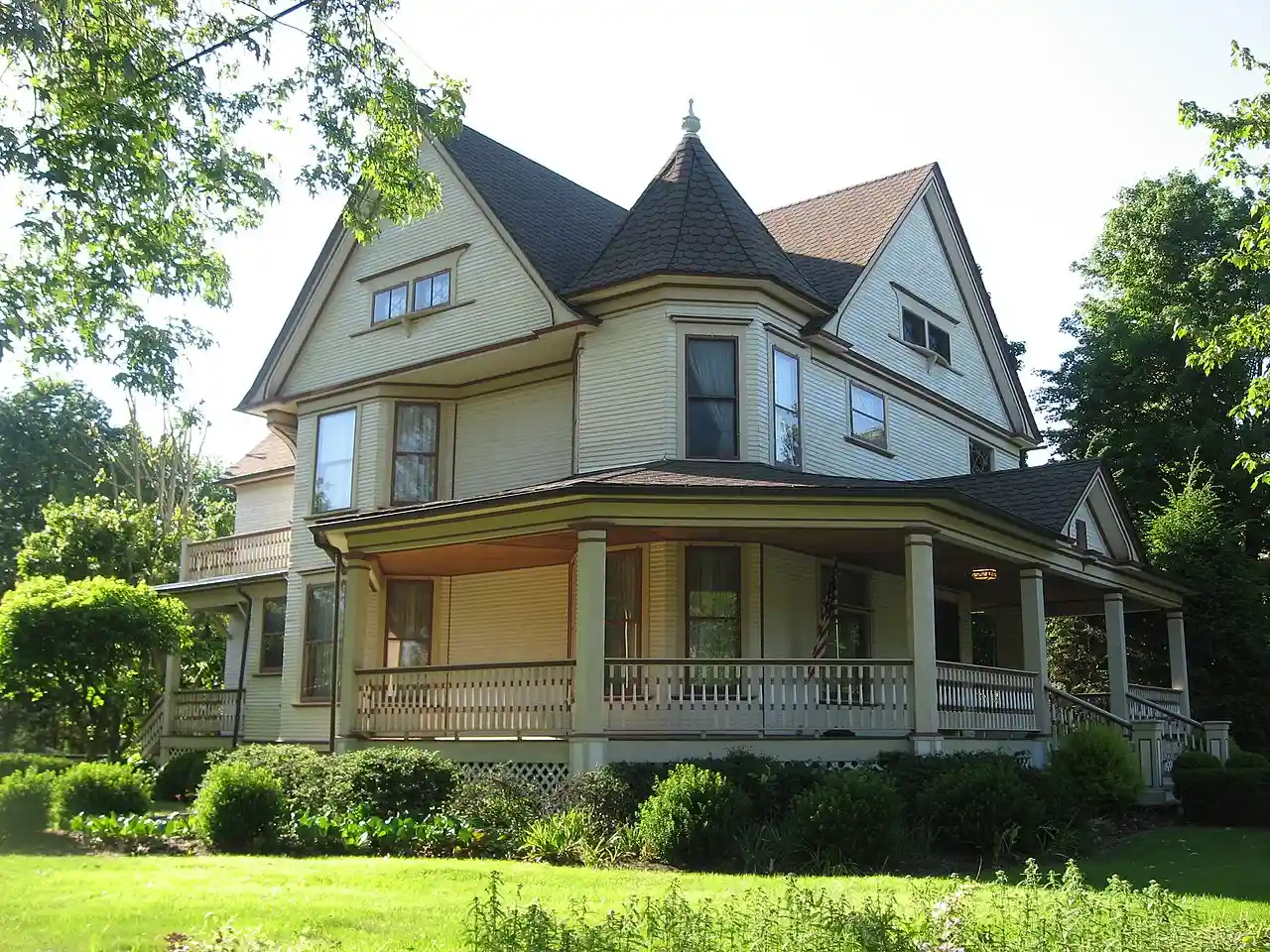 Crawford-Winslow House is a historic home located at Crown Point, Lake County, Indiana, USA. It was built in 1890, and is a 2½-story, Queen Anne style frame dwelling with a cross gable roof with fishscale shingles. It features a corner tower with conical roof, wraparound porch, and leaded glass windows. Also on the property is a contributing garage (c. 1910). Note: This includes and Accompanying photographs. Read more on Wikipedia