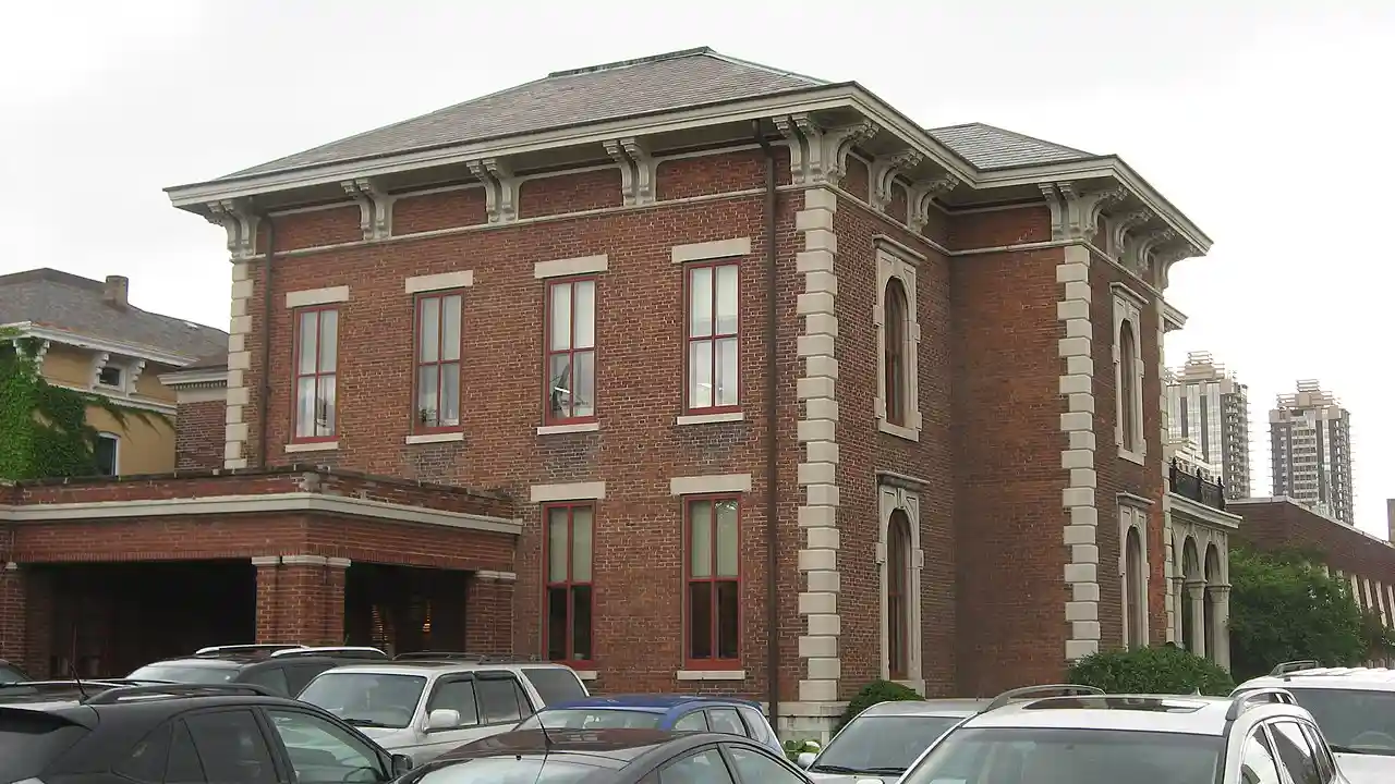 Bals–Wocher House is a historic home located in Indianapolis, Indiana. It was built in 1869–1870, and is a three-story, Italianate style brick dwelling with heavy limestone trim. It has a low hipped roof with deck and paired brackets on the overhanging eaves. It features stone quoins and an off-center arcaded loggia. Note: This includes and Accompanying photographs Read more on Wikipedia