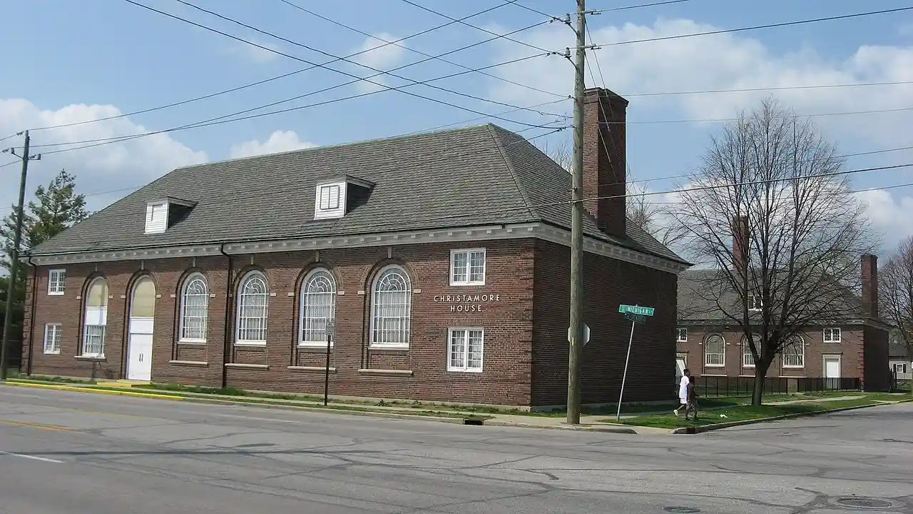 Christamore House is a historic settlement house associated with Butler University and located at Indianapolis, Marion County, Indiana. It was built between 1924 and 1926, and is -story, U-shaped, Georgian Revival style brick mansion. It consists of a two-story, five-bay, central section flanked by one-story wings. It has a slate hipped roof and is nine bays wide, with a three-bay central pavilion. The building features large round-arched windows and contains an auditorium and a gymnasium. Note: This includes Read more on Wikipedia