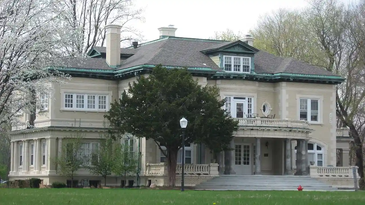 Henry F. Campbell Mansion, also known as Esates Apartments, is a historic home located at Indianapolis, Marion County, Indiana. It was built between 1916 and 1922, and is a large -story, Italian Renaissance style cream colored brick and terra cotta mansion. It has a green terra cotta tile hipped roof. The house features a semi-circular entry portico supported by 10 Tuscan order marble columns. Also on the property are the contributing gardener's house, six-car garage, barn, and a garden shed. Note: This includes and Accompanying photographs Read more on Wikipedia