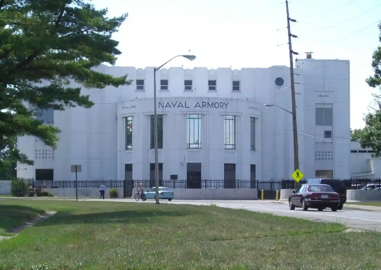 Heslar Naval Armory (formerly Indianapolis Naval Reserve Armory) was constructed in 1936 in Indianapolis, Indiana, United States, on the shore of White River as a Works Progress Administration construction project. It was designed by architect Ben H. Bacon and reflects an Art Moderne style. Heslar Naval Armory was the home of Naval Operations Support Center Indianapolis, Marine Corps Reserve Center Indianapolis, and Naval Recruiting Station Indianapolis, as well as the United States Naval Sea Cadet Corps Cruiser Indianapolis (CA-35) Division and the Central Indiana Young Marines of the Marine Corps League. In October 2008 the Indiana Wing Civil Air Patrol, state branch of the US Air Force Auxiliary, moved its headquarters functions and staff to the Armory. Read more on Wikipedia