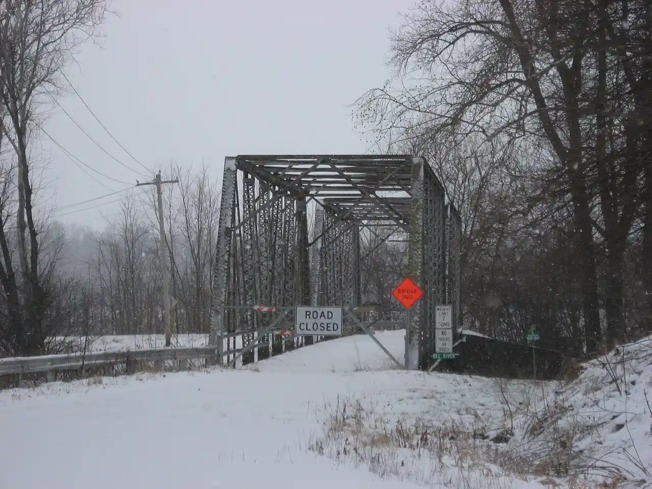Eikenberry Bridge, also known as Bridge 1–19, Lost Bridge, and Miami County Bridge #28, is a historic Pratt Through Truss bridge located in Richland Township, Miami County, Indiana. It was built about 1920 by the Rochester Bridge Company and spans the Eel River. It is a two-span metal truss bridge with an overall length of 227 feet. Note: This includes . Read more on Wikipedia