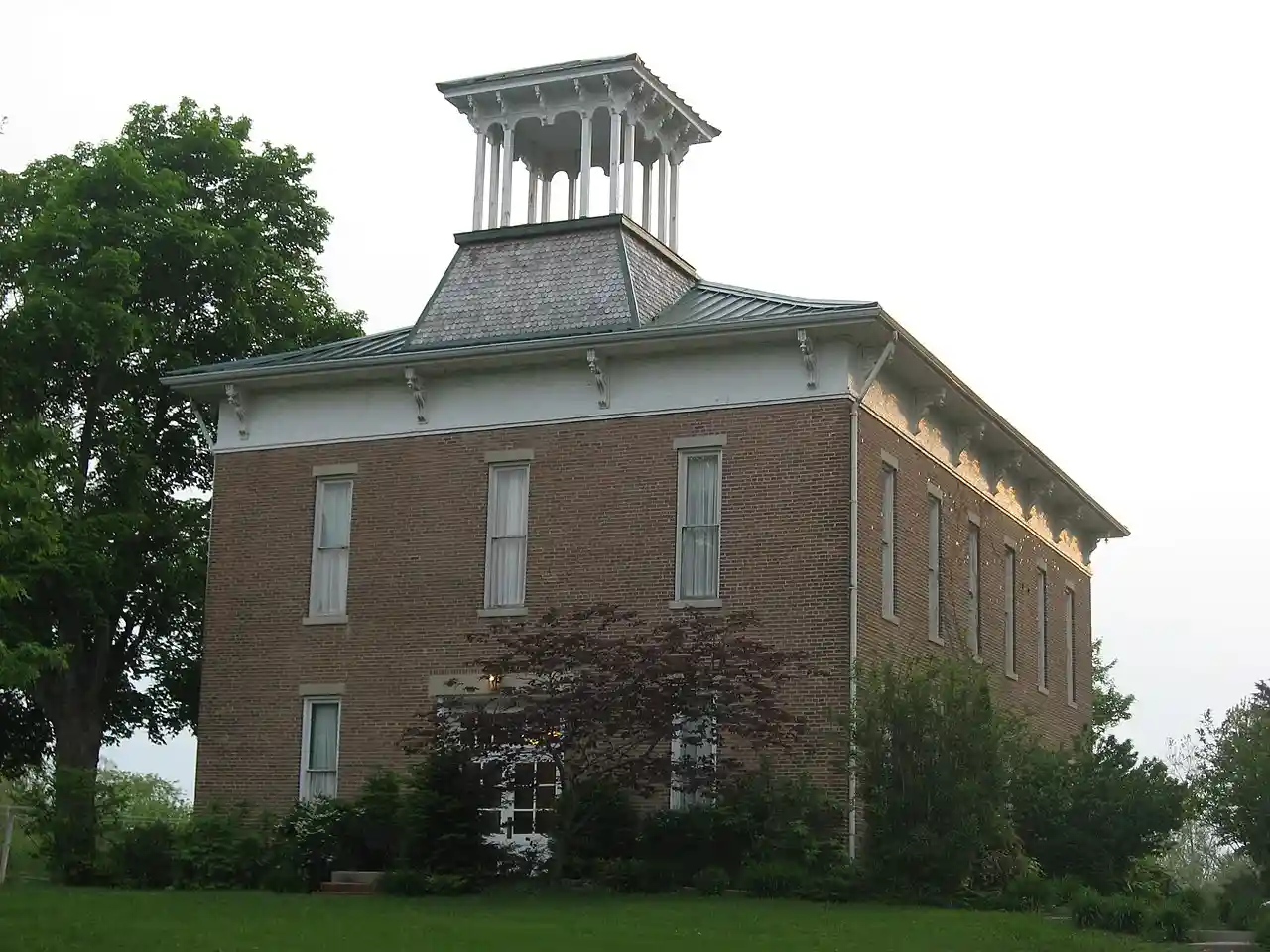 Normal Hall, also known as Ladoga Normal School, Ladoga High School, and American Legion Post #324, is a historic school building located at Ladoga, Montgomery County, Indiana. It was built in 1878, and is a two-story, three bay by six bay, Greek Revival / Italianate style brick building. It has a hipped roof topped by an open cupola, originally a bell tower added in 1907. It is the only remaining building associated with the Central Indiana Normal School, which relocated in 1878 to Danville, Indiana to become Canterbury College. It housed local schools until 1917, then housed an armory, and an American Legion post after 1944. Note: This includes and Accompanying photographs. Read more on Wikipedia