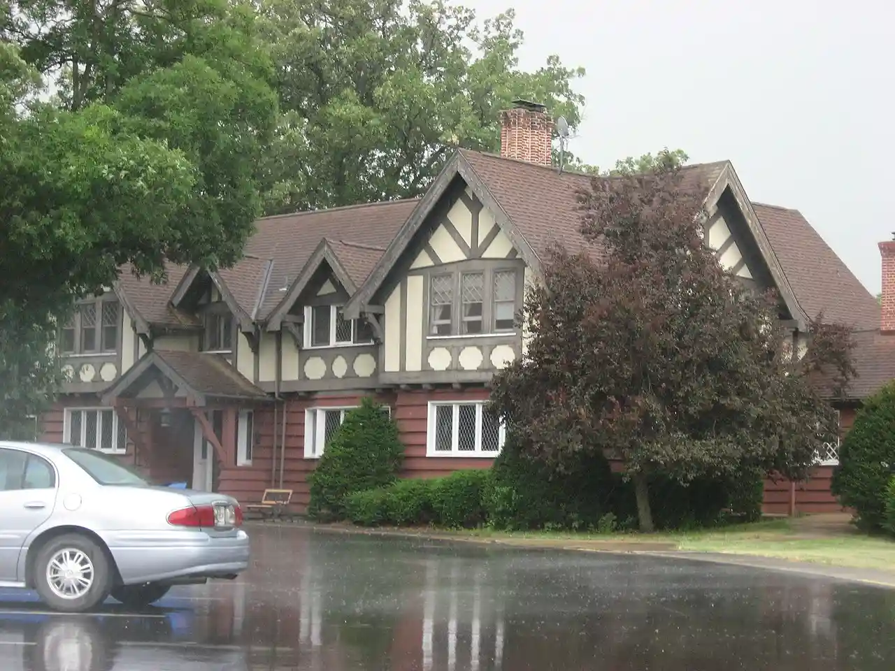 George Ade House, also known as Hazelden, is a two-story, fourteen-room, Tudor Revival-style home in Iroquois Township in Newton County, Indiana. Chicago architect Billie Mann designed the frame dwelling, built in 1904, George Ade (1866–1944), a syndicated newspaper columnist, author, humorist, and playwright. Ade named the property Hazelden, after his English grandparents' home. Read more on Wikipedia