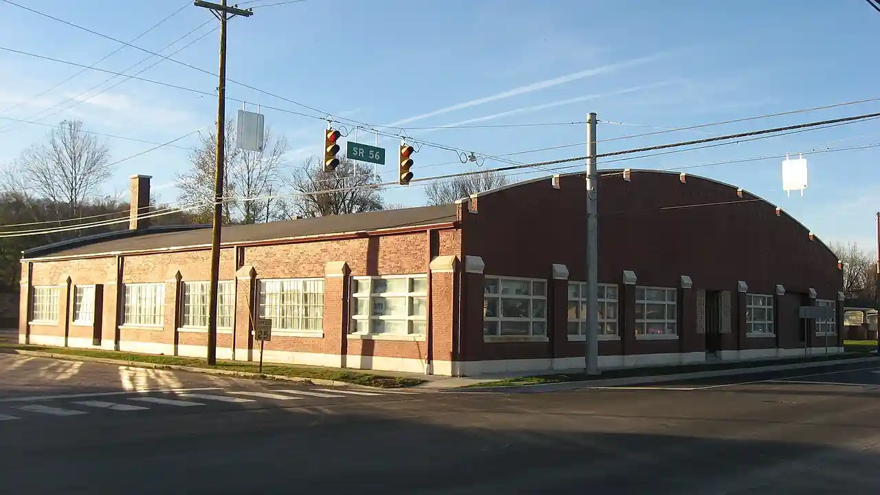 Dixie Garage, also known as the Nash Garage, is a historic automobile repair shop located at West Baden Springs, Orange County, Indiana. It was built between 1918 and 1920, and is a large one-story, brick building with a barrel vaulted roof. It is square in plan and features curved parapets and corner piers. Inside the building is a two-story, concrete block structure. The building housed an automobile repair shop until the late 1930s, after which it housed a skating rink, bottling plant, and wood manufacturer. Note: This includes and Accompanying photographs. Read more on Wikipedia