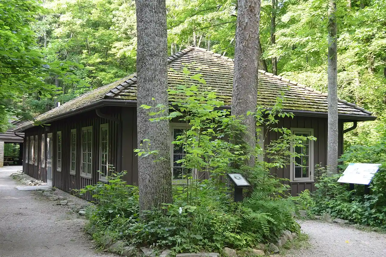 CCC Recreation Building-Nature Museum is a historic building located at McCormick's Creek State Park in Washington Township, Owen County, Indiana. It was built by the Civilian Conservation Corps in 1933, and is a one-story, frame building with board-and-batten siding and American Craftsman style design elements. It consists of a rectangular hip roofed main section, with a gabled wing. The wing features a large stone fireplace. The building was rehabilitated for use as a nature museum by the Works Progress Administration in 1936, and remained in that use into the 1970s. Note: This includes and Accompanying photographs. Read more on Wikipedia