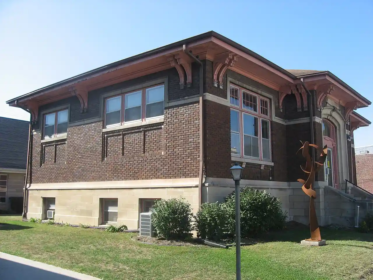 The old Spencer Public Library is a former public library and historic Carnegie library located at Spencer, Owen County, Indiana. It was built in 1912, and is a one-story, three-bay, American Craftsman style brick building on a raised basement. It has a low-pitched hipped roof and projecting entry bay. It was constructed with a $10,000 grant provided by the Carnegie Foundation. Note: This includes and Accompanying photographs. Read more on Wikipedia