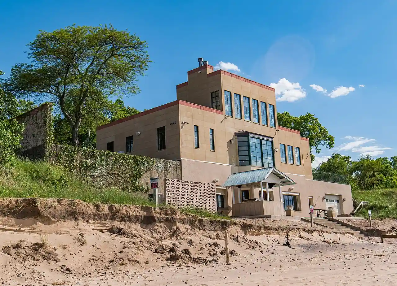 The Wieboldt-Rostone House is a historic building in the Century of Progress Architectural District in Beverly Shores, Indiana. The home was built in 1933, framed in steel, and clad with an artificial stone called Rostone (Limestone, shale and alkali). Billed as never needing repairs, it only lasted without renovations until the 1950s.Cultural Sites of Indiana Dunes National Lakeshore; National Park Service, Indiana Dunes National Lakeshore; Porter, Indiana Read more on Wikipedia