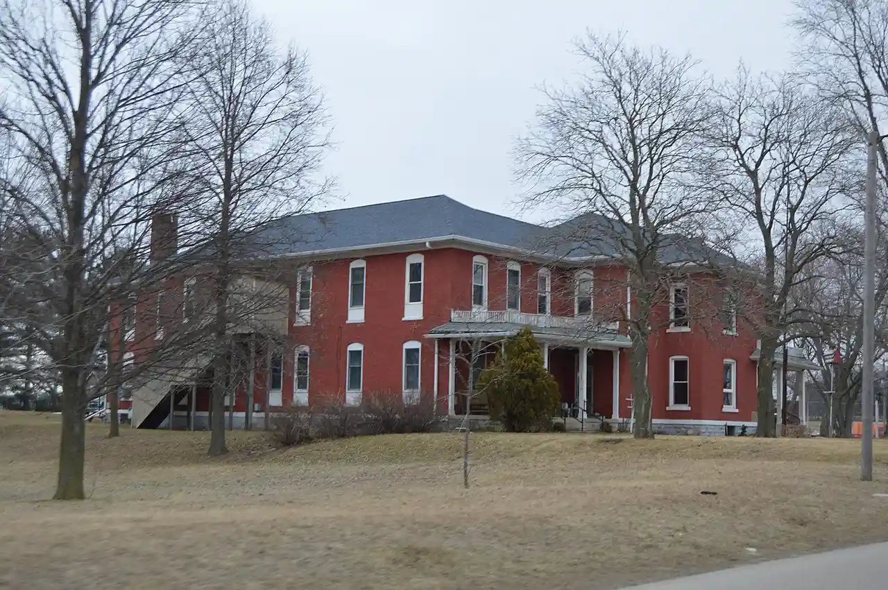 Pulaski County Home, also known as Pleasant View Rest Home, is a historic poor farm located in Monroe Township, Pulaski County, Indiana. The original section was built in 1881, and expanded with two wings in 1897. It is a large, four-story, Italianate style red brick building. It has a low-pitched, multiple hip and valley roof and features multiple porches, stoops, and access points. Also on the property are the contributing Pest House (1882), post and beam barn (1929), and milk house. It is one of Indiana's few county homes still in active service. Note: This includes and Accompanying photographs. Read more on Wikipedia