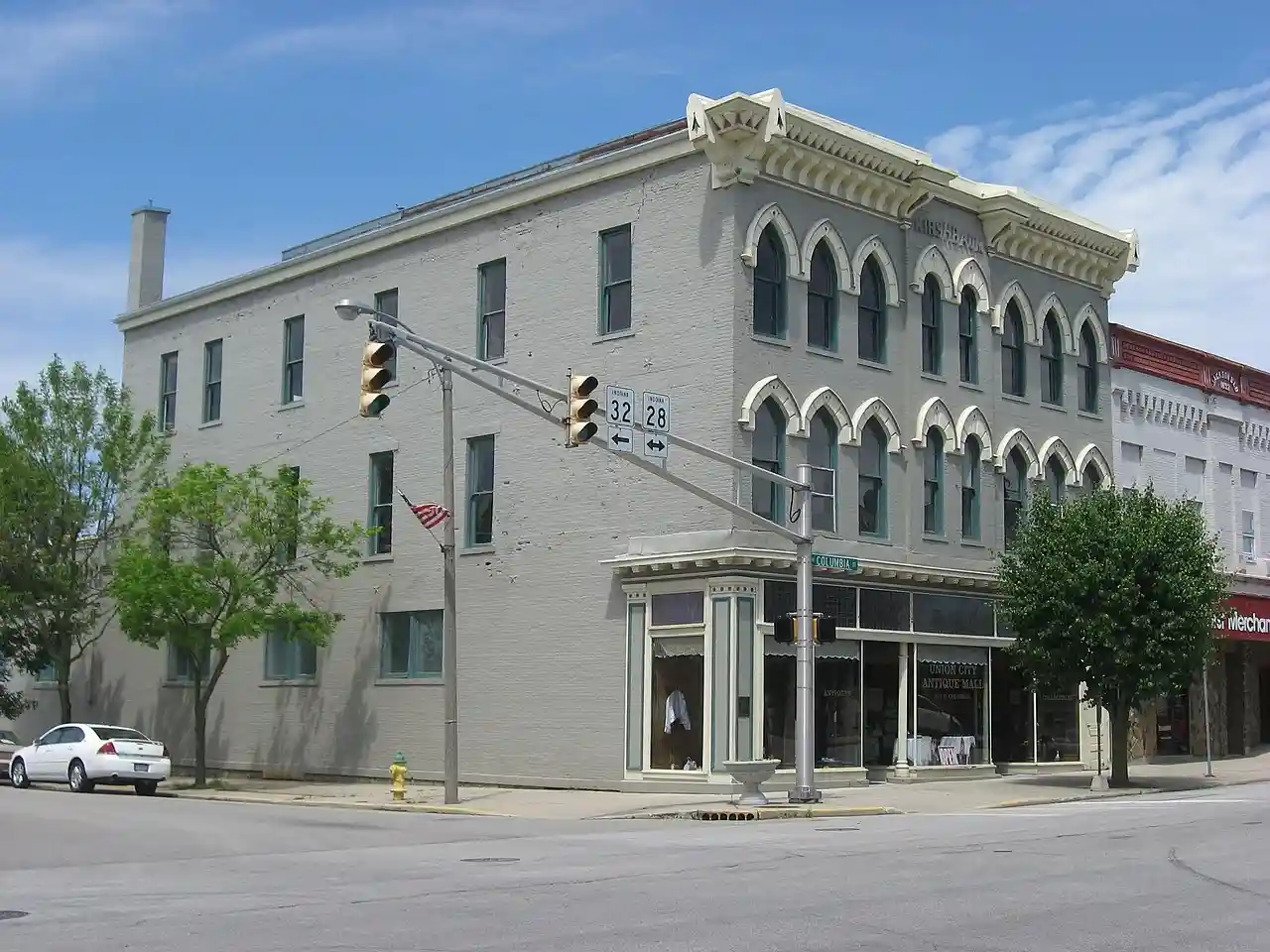 Raphael Kirshbaum Building, also known as the R. Kirshbaum Company, is a historic commercial building located at Union City, Randolph County, Indiana. It was built in 1876, and is a three-story, rectangular, Italianate style brick building. It features rounded arch openings with pressed tin hoodmolds and a metal cornice with a wide overhang supported by brackets. Note: This includes and Accompanying photographs. Read more on Wikipedia