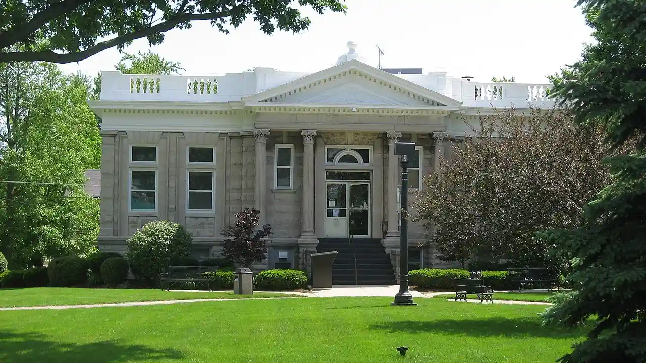 Union City Public Library is a historic Carnegie library building located at Union City, Randolph County, Indiana. A grant request application was sent to Andrew Carnegie in the Fall of 1903, announcement for the approval of the grant was received in Union City in early December 1903, construction bids were taken in early 1904, ground was broken and foundation construction was started in early June 1904, and the building was completed and the library's collection installed in May, 1905, in time for a public grand opening and celebration held on June 8, 1905. The structure, of which the final design was approved by Carnegie, is a Classical Revival style Indiana limestone building with an upper main floor, and a former basement storage area which has been converted over for a youth services library and programing. Its design features a wooden pediment supported by four Corinthian order limestone columns and a wood balustrade. Its construction was funded by a $10,000 grant from the Carnegie Foundation. Note: This includes and Accompanying photographs. Read more on Wikipedia