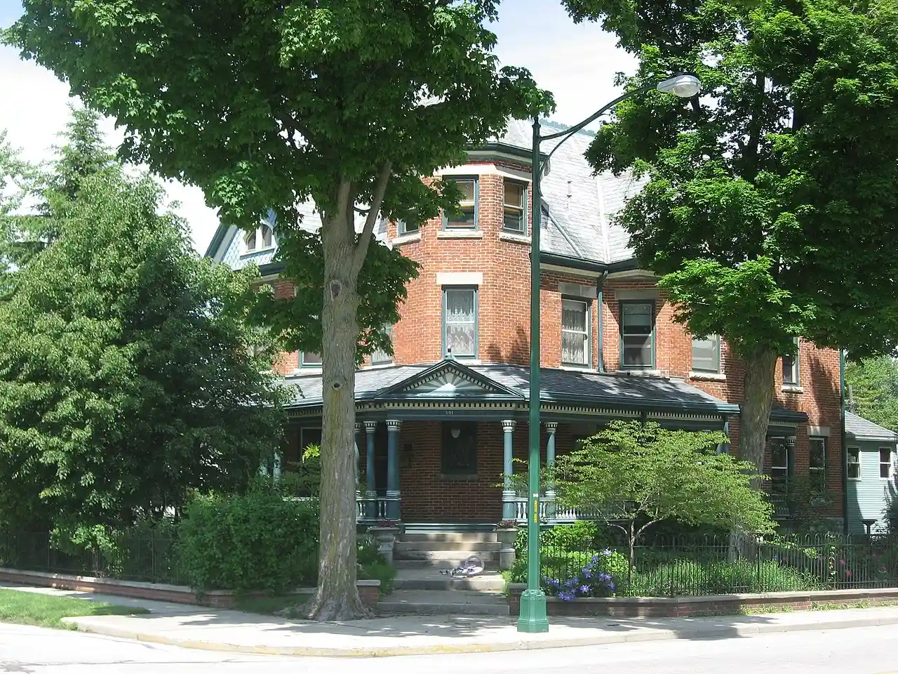 William Kerr House is a historic home located at Union City, Randolph County, Indiana. It was designed by architecture firm of George F. Barber & Co. and built about 1896. It is a -story, Queen Anne style brick veneer dwelling. It has a hipped cross-gable roof sheathed in slate. It features a hexagonal corner tower, gabled three-sided bays, and a wraparound porch. Also on the property is a contributing brick garage (c. 1920). Note: This includes and Accompanying photographs. Read more on Wikipedia