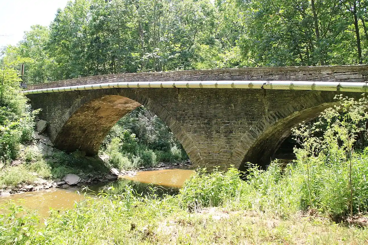 Collin's Ford Bridge, also known as Bridge #28, is a historic stone arch bridge located within Big Oaks National Wildlife Refuge (formerly Jefferson Proving Ground) in Shelby Township, Ripley County, Indiana. It was built about 1907, and is a two-span, round-arch bridge constructed of limestone. It measures 108 feet long and is 17 feet wide. The property was acquired by the U.S. Army in 1941. Note: This includes . Read more on Wikipedia
