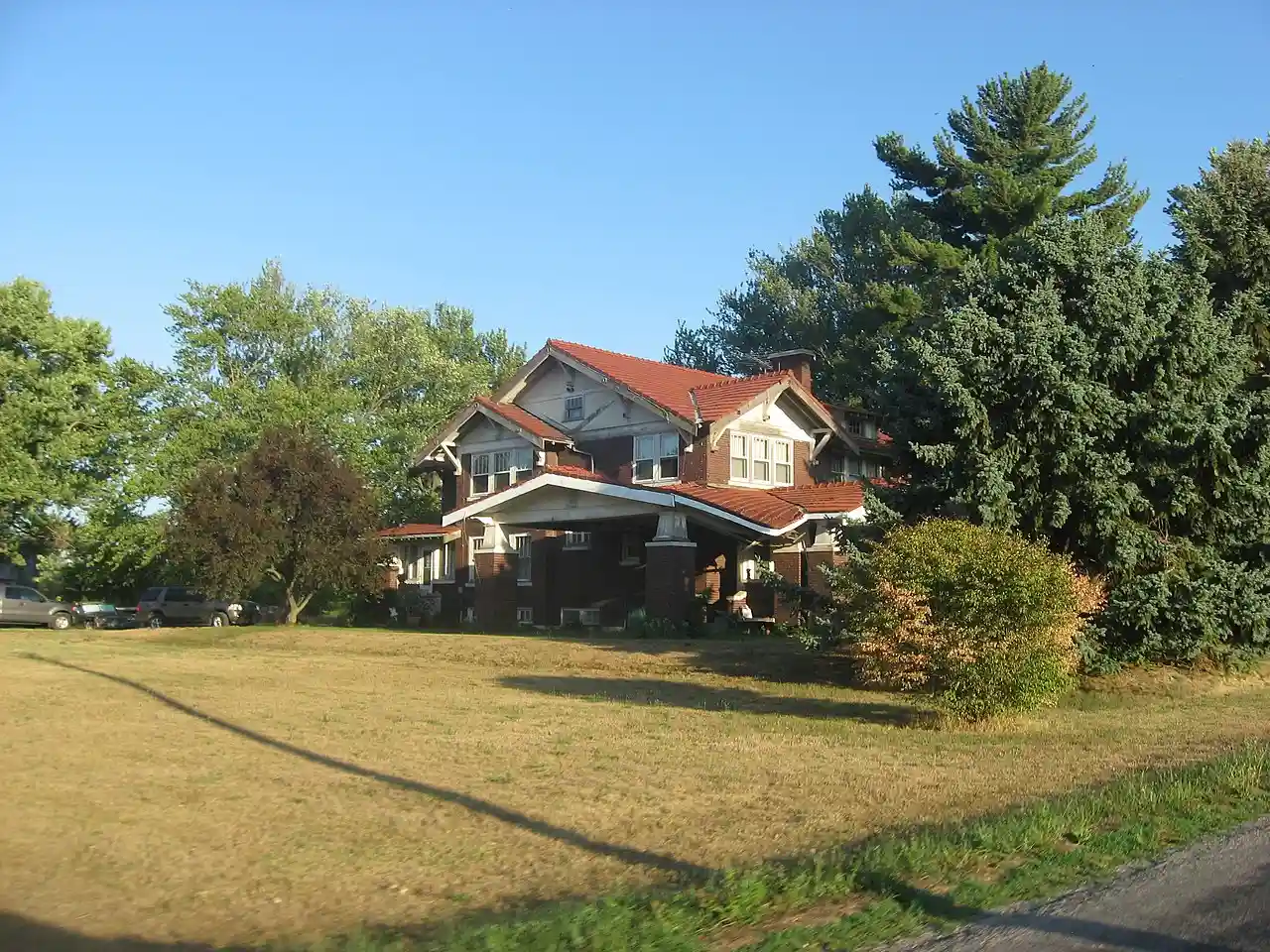 Maurice W. Manche Farmstead is a historic home and farm and national historic district located in Ripley Township, Rush County, Indiana. The farmhouse was built in 1919, and is large two-story, Bungalow / American Craftsman style dwelling faced in brown brick, stucco and half-timbering. It has a low pitched roof with red ceramic tile features a connected long porte cochere and porch. Also on the property are the contributing gambrel roofed livestock barn, corn crib, windmill, scale shed, and fence. Note: This includes . Read more on Wikipedia