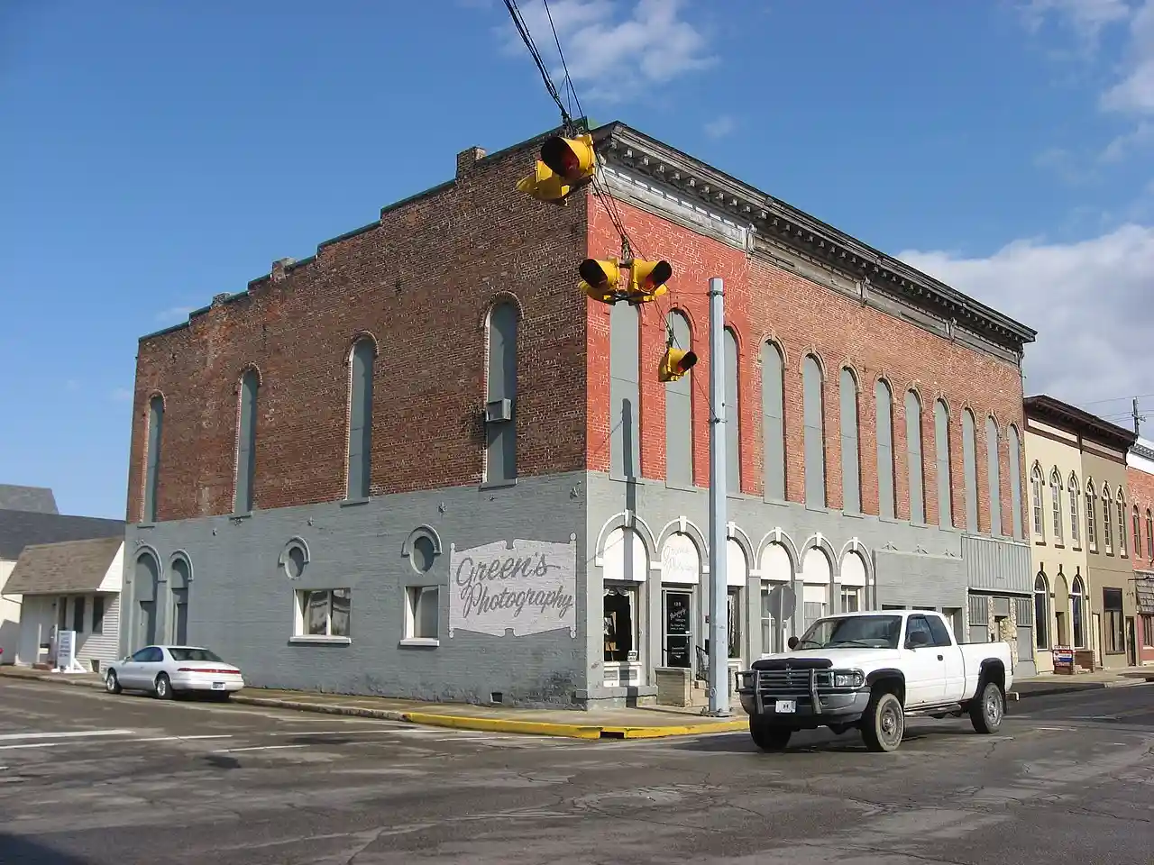 Melodeon Hall is a historic meeting hall and theatre building located at Rushville, Rush County, Indiana. It was built in 1872, and is a two-story, Late Victorian style brick building. The Melodeon Hall is located on the second floor and measures 58 feet wide by 42 feet long. The lower-level houses three shops. Note: This includes and Accompanying photographs. Read more on Wikipedia