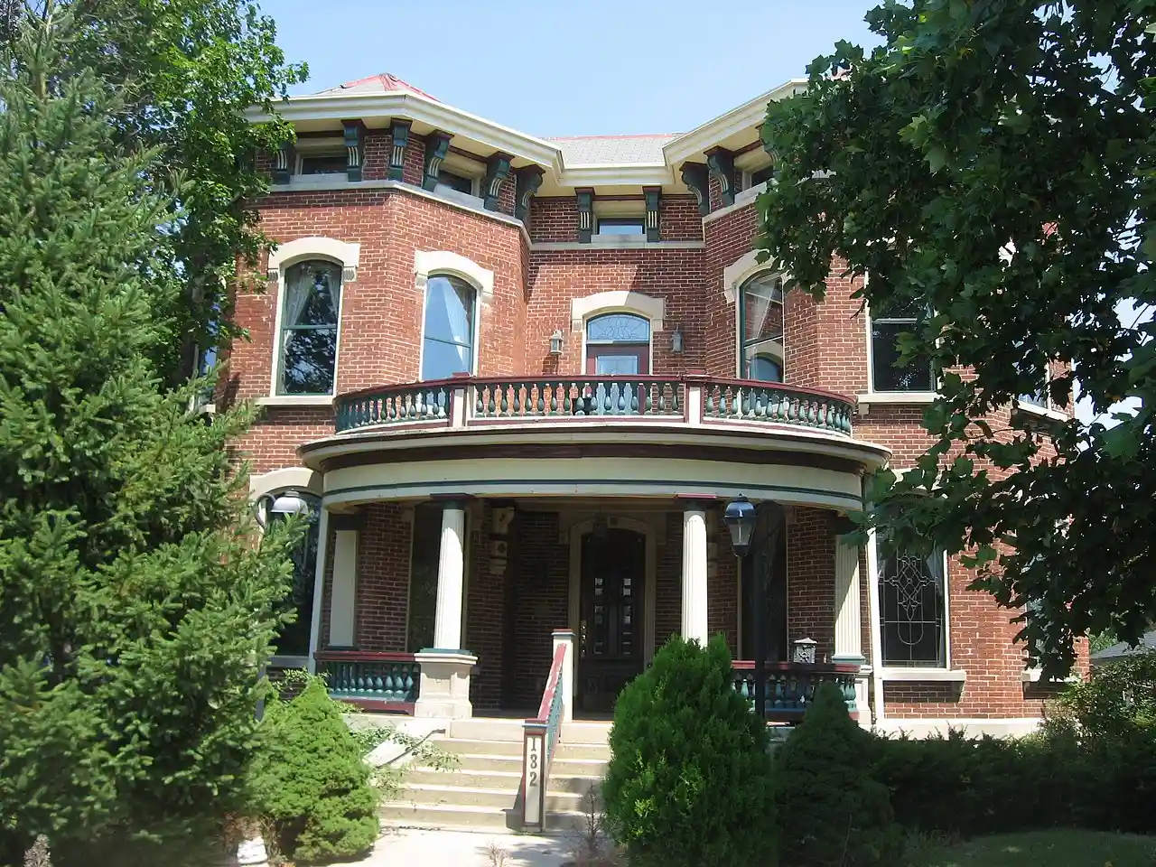 John Hamilton House, also known as the Hamilton House, is a historic home located at Shelbyville, Shelby County, Indiana. It was built in 1853, and is a -story, rectangular, Italianate style brick dwelling. It has a slate roof and sits on a limestone block foundation. The front facade features segmental arched windows, and two two-story projecting polygonal bays flanking a semi-circular one-story porch supported by Doric order columns added about 1910. Note: This includes and Accompanying photographs Read more on Wikipedia
