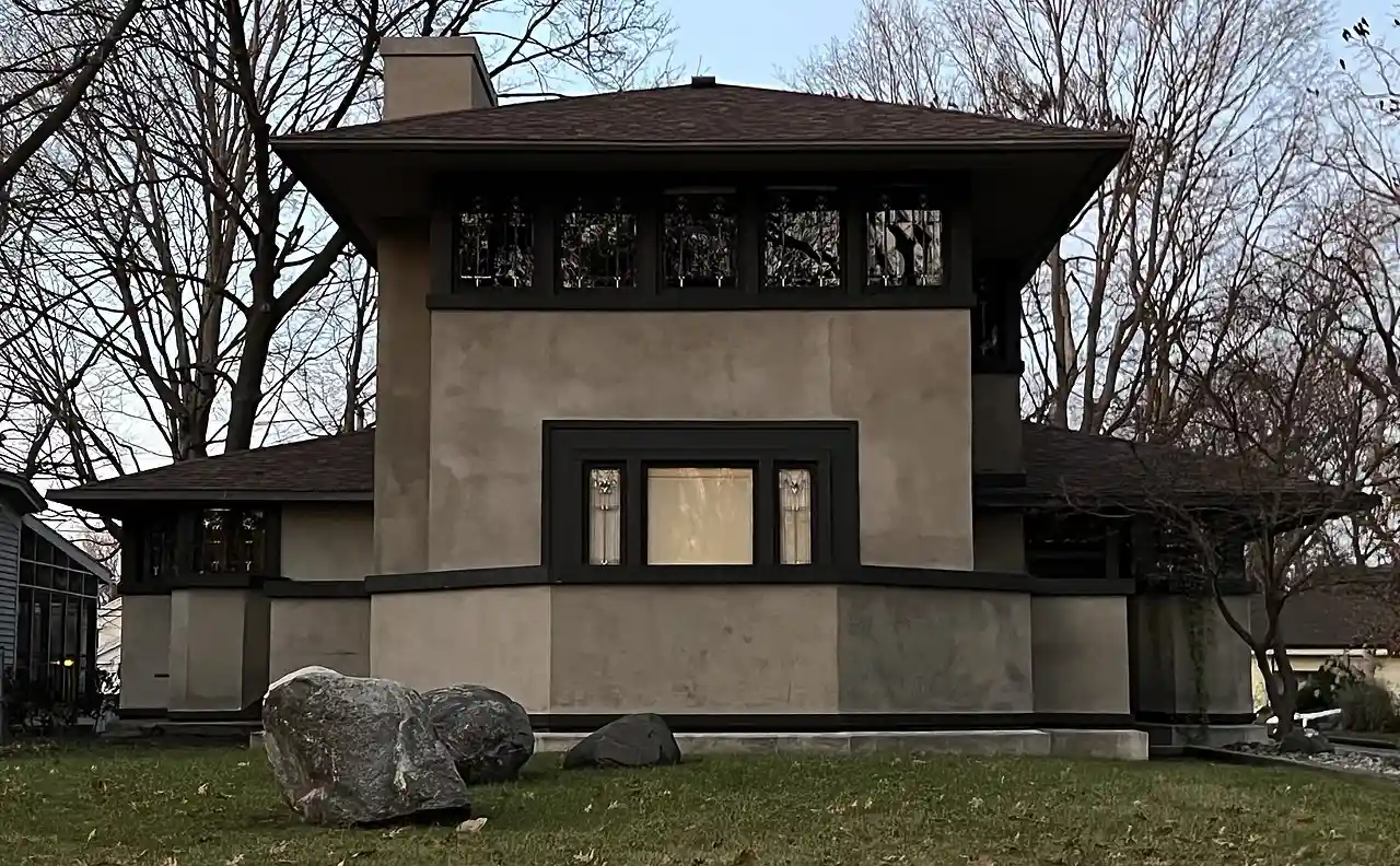The K. C. DeRhodes House was built for newlyweds Laura Caskey Bowsher DeRhodes and Kersey C. DeRhodes in 1906 by Frank Lloyd Wright. It is a Prairie style home located at 715 West Washington Street in South Bend, Indiana. The home was carefully restored by Tom and Suzanne Miller over more than four decades and remains in private ownership. It is one of two Wright homes in South Bend, the other being the Herman T. Mossberg Residence. It is one of eight Frank Lloyd Wright designed homes in Indiana, of which seven remain. It was also the first home Frank Lloyd Wright built in Indiana. Read more on Wikipedia