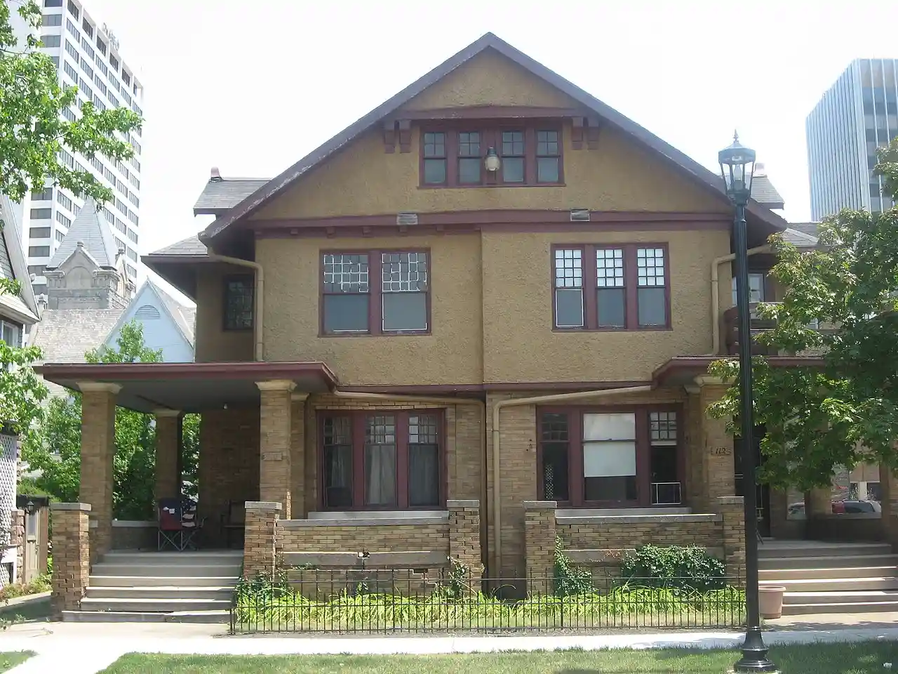 Morey House is a historic apartment house located at South Bend, St. Joseph County, Indiana. It was built in 1909, and is a large -story, building with a brick first story and stuccoed upper stories in an American Craftsman vernacular style. It has an irregular plan and features two small square porches with balconies on the corners of the front facade. Note: This includes Read more on Wikipedia