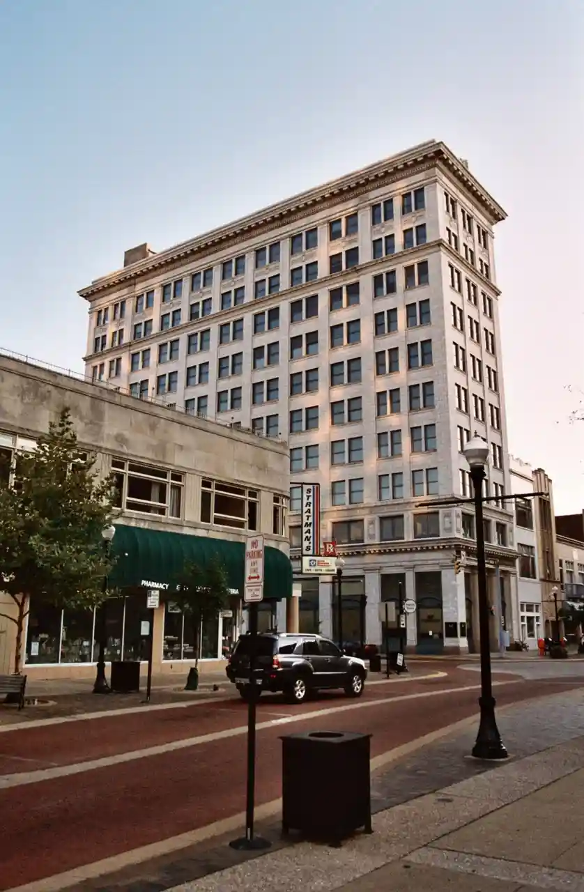 Citizens National Bank, since known as the Hilliard-Lyons Building and Kunkel Square, is a building noted for its stone and terracotta facade, located at Fourth and Main Street in downtown Evansville, Indiana. The building is ten stories tall and was the region's first skyscraper. The architect was William Lee Stoddart. It officially opened on Washington's birthday in 1916. Note: This includes , , and Accompanying photographs In 2011 the building was converted to 46 luxury apartments. Read more on Wikipedia