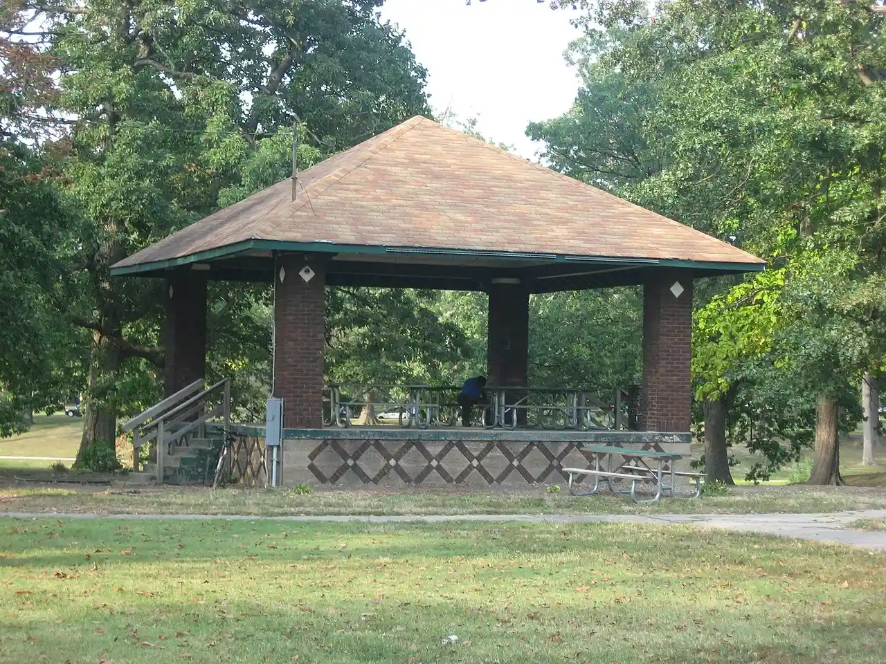 Garvin Park is a historic public park located in Evansville, Indiana, United States. It was planned and laid out in 1915 for the city of Evansville in a naturalistic landscape style. Located in the park are the contributing concrete and stone bridges and a Works Progress Administration-era bandstand. Note: This includes , and accompanying photographs Read more on Wikipedia