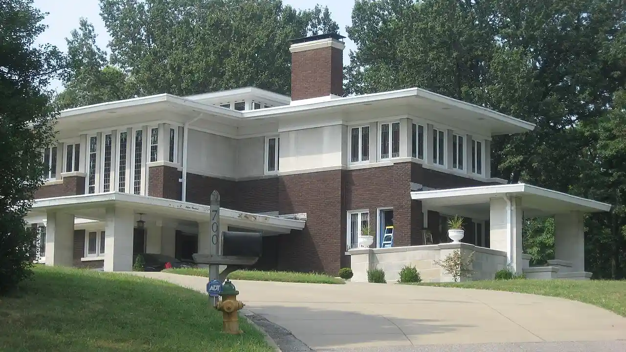 Michael D. Helfrich House is a historic home located at Evansville, Indiana. It was designed by the architectural firm Clifford Shopbell & Co. and built in 1920. It is a two-story, Prairie School style brown brick and limestone sheathed dwelling. It features a complex arrangement of interlocking masses, art glass windows, corner piers, massive brick chimney, and a porte cochere. Note: This includes and Accompanying photographs Read more on Wikipedia