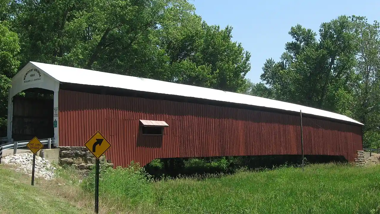 Newport Covered Bridge, also known as the Morehead Covered Bridge and County Bridge No. 67, is a historic Burr Arch Truss covered bridge located in Vermillion Township, Vermillion County, Indiana. It was built in 1885, and is a single span covered timber bridge. It measures 210 feet long and 16 feet wide. The bridge spans the Little Vermilion River. Note: This includes and Accompanying photographs Read more on Wikipedia
