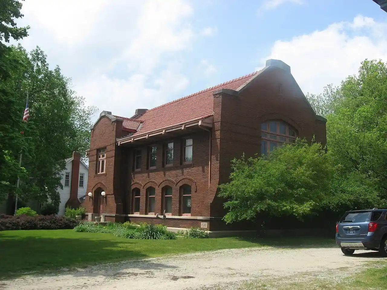 Old North Manchester Public Library is a historic Carnegie library building located at North Manchester, Wabash County, Indiana. It was built in 1912, and is a two-story, rectangular, American Craftsman style dark red brick building over a basement. It has a low-pitched side gable roof of red Spanish tile and wide overhanging eaves. The building corners feature massive piers with sloping sides. It was built in part with a $10,000 donation from the Carnegie Foundation. Note: This includes and Accompanying photographs Read more on Wikipedia