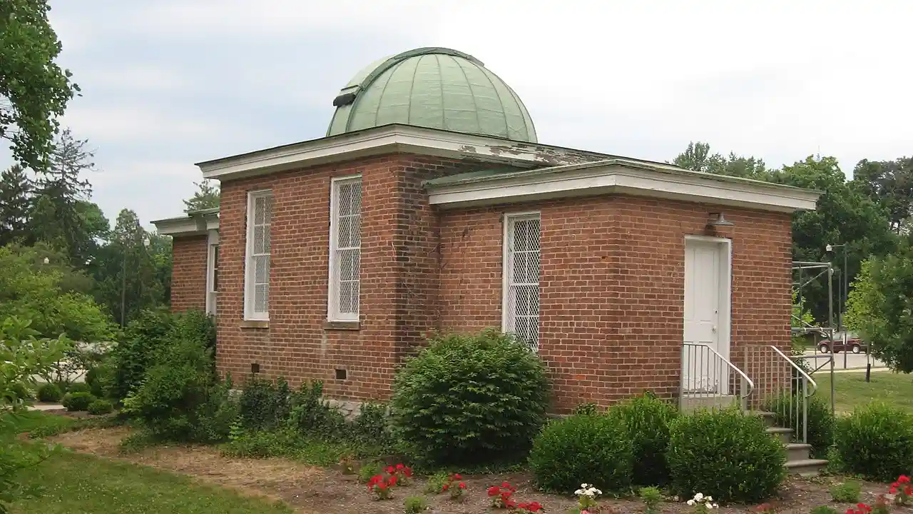 Earlham College Observatory is a historic observatory building located on the campus of Earlham College at Richmond, Wayne County, Indiana. It was built in 1861, and is a one-story, brick building with a hipped roof. It consists of a 19-foot-square central section topped by a copper dome with a removable section, and flanked by 10-foot by 19-foot sections. Beneath the revolvable dome is a -inch objective lens telescope located in the center of the main block. Note: This includes and Accompanying photographs Read more on Wikipedia