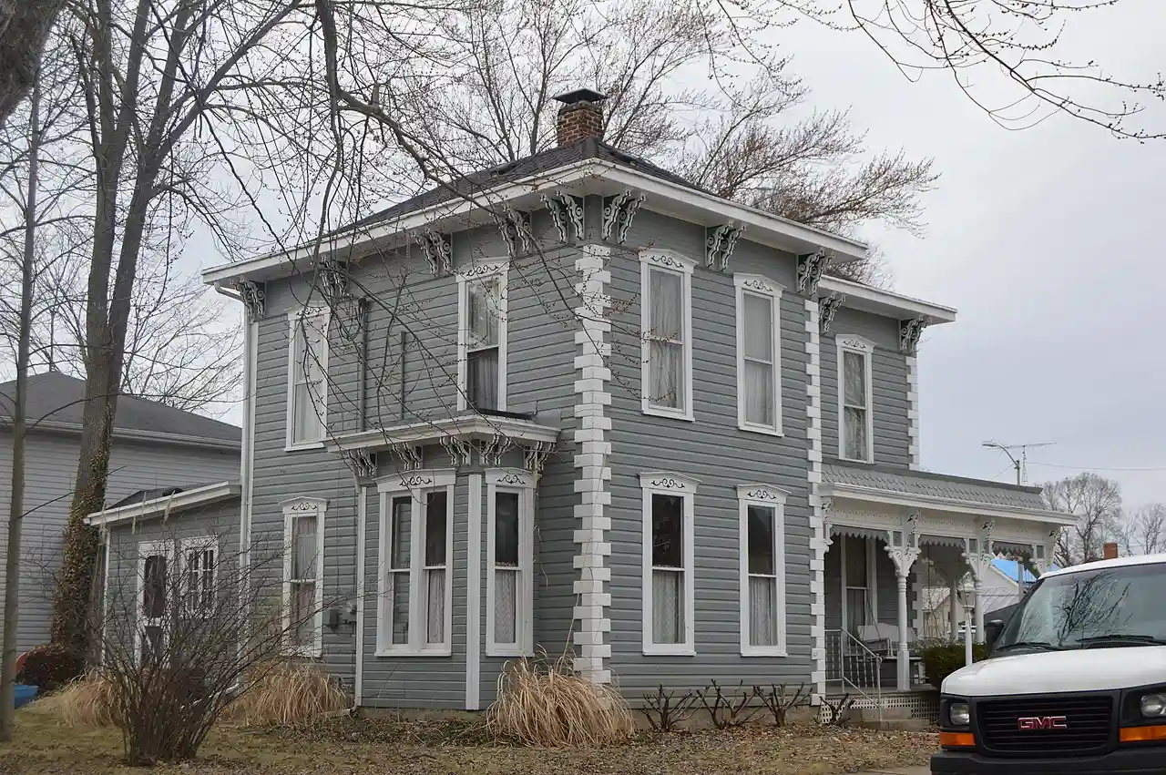 John and Caroline Stonebraker House is a historic home located at Hagerstown, Wayne County, Indiana. It was built about 1875, and is a two-story, "L"-plan, Italianate style frame dwelling with a bracketed hipped roof. It is clad in Dutch-lap board with wooden quoins at each corner. It features a wraparound Eastlake movement style porch added about 1890. Note: This includes and Accompanying photographs Read more on Wikipedia