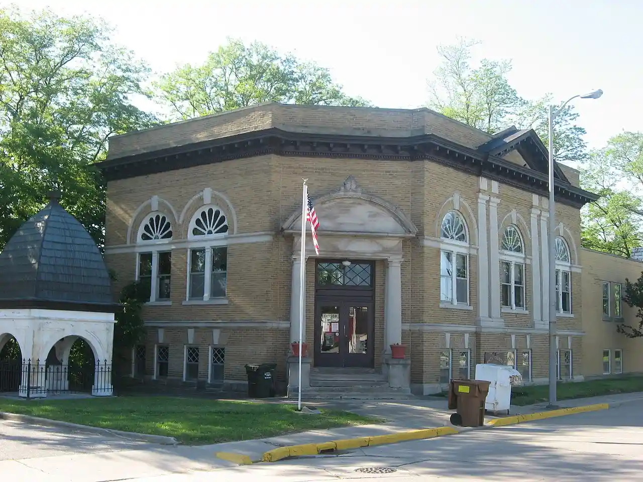 Monticello Carnegie Library, also known as the White County Historical Society, is a former library in the historic Carnegie library building located at Monticello, White County, Indiana. It was built in 1907, and is a two-story, Classical Revival style buff brick building on a raised basement. It features a large limestone entrance portico and full round arched window openings. A two-story addition was built in 1957. The original building was constructed with a $10,000 grant from the Carnegie Foundation. Note: This includes and Accompanying photographs Read more on Wikipedia