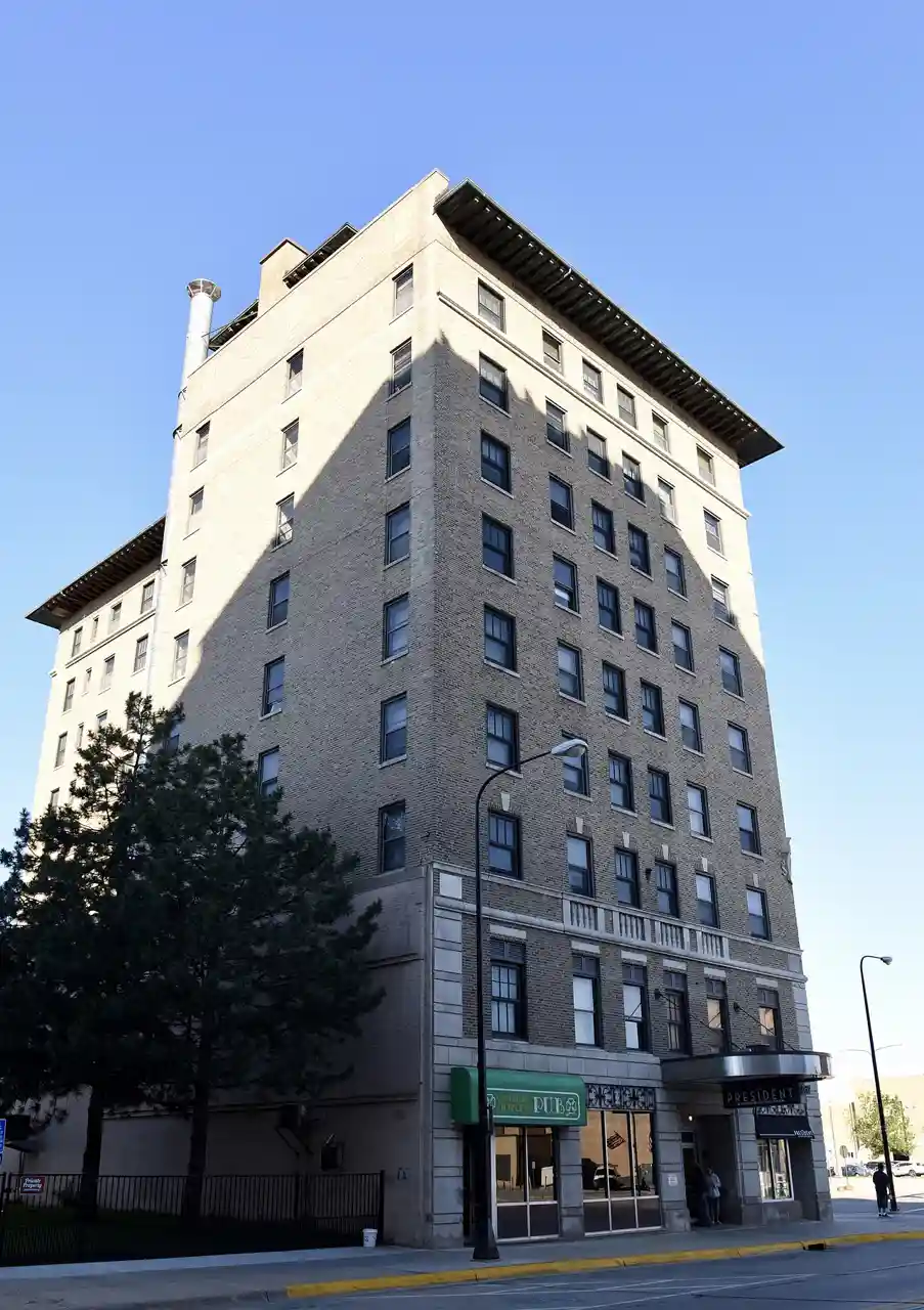 The Hotel President, also known as the Park Towers Apartments, is an historic building located in downtown Waterloo, Iowa, United States. The building was completed in 1929, and it opened as a "showcase hotel." In 1948, Paul "Pinkie" George and five other wrestling promoters from the Midwest founded the National Wrestling Alliance in the hotel. The manager of the hotel at the time was Lark Gable, the grandfather of Olympic gold medal winner Dan Gable. Various companies owned and operated the hotel until it was acquired in 1968 by Elders Inc., a nonprofit group of churches. They converted the building into subsidized housing. It was bought by local developers Brent Dahlstrom and Jim Sulentic in 2011 and they sold it to Huntley Witmer Development of Los Angeles. Huntley Witmer spent $12 million in 2015 renovating the building that continues to house 84 units of federally subsidized housing. It was listed on the National Register of Historic Places in 2017. Read more on Wikipedia