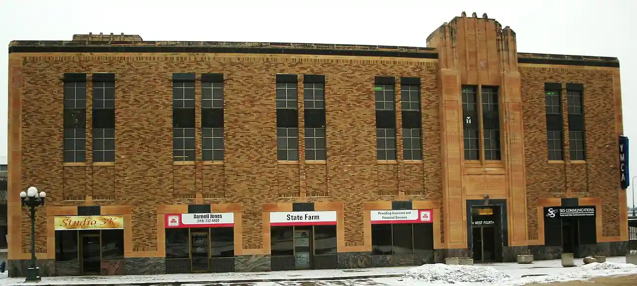 The YMCA Building is a historic building located in Waterloo, Iowa, United States. The local YMCA was established in 1868, three months after the city was incorporated. with Its first permanent building was built at this location in 1893. As membership expanded they eventually out grew the building, and it was torn down in 1930. The present building was designed by local architect Mortimer Cleveland and his associate D.B. Toenjes. The general contractor was H.A. Maine Construction. The three-story brick structure features decorative elements from the Art Deco mode. The first level has housed commercial firms in the storefronts. An addition was built onto the west side of the building in 1959 to house adult activities. The local YMCA built a new facility and moved from here in 1982. The following year the building was listed on the National Register of Historic Places. It has been converted into an office building. Read more on Wikipedia