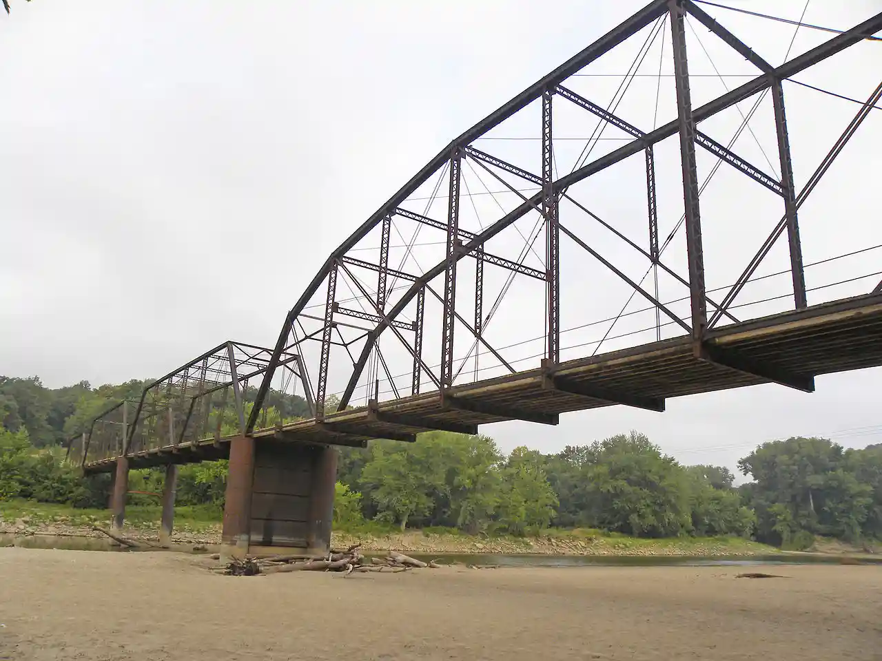Boone Bridge 2, also known as the Wagon Wheel Bridge, was a historic structure that was located west of Boone, Iowa, United States. It spanned the Des Moines River for . with The Boone Commercial Association and the Boone County Board of Supervisors disagreed over the location of a new wagon bridge over the river. The county wanted the new bridge west from Eighth Street in Boone, closer to the Chicago and North Western Railroad's Boone Viaduct. The businessmen wanted to rebuild the Incline Bridge. The dispute was resolved when the Commercial association offered to buy the Incline Bridge. The county contracted with the Iowa Bridge Company to design and build the bridge, which was completed in 1910 for $77,900. The bridge consisted of a long-span Pennsylvania truss over the main channel of the river and three Pratt trusses over the floodplain. It was listed on the National Register of Historic Places in 1998. Read more on Wikipedia