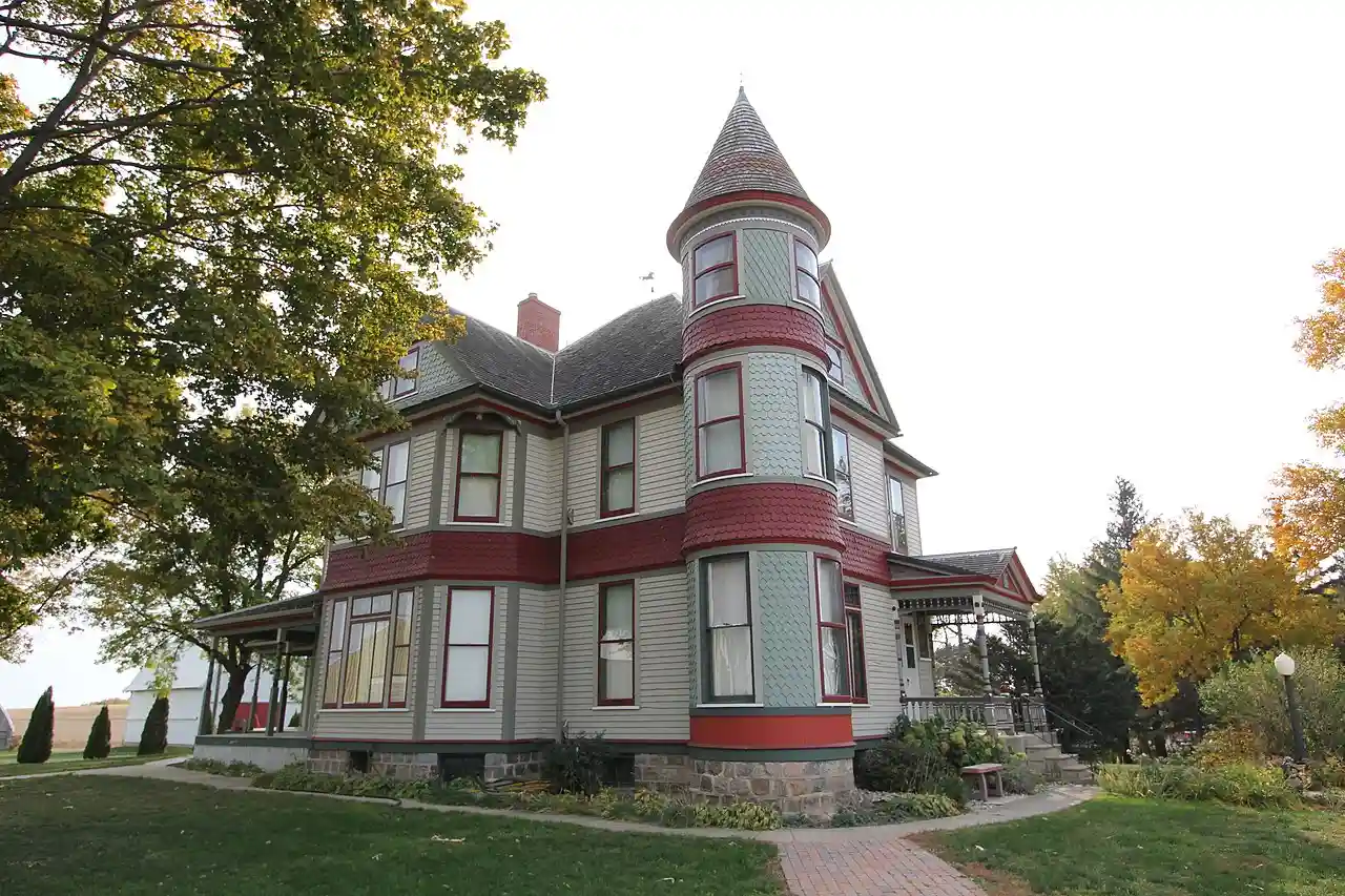 The Jesse J. and Mary F. Allee House, also known as the Allee Mansion, is a historic house located at 2020 640th Street in Newell, Iowa. The Queen Anne style Victorian house was built in 1891. The Newell Historical Society leased the house in 1988 and subsequently restored it to a Victorian appearance; the historical society now uses the mansion as a museum. The home was added to the National Register of Historic Places in 1992. Read more on Wikipedia