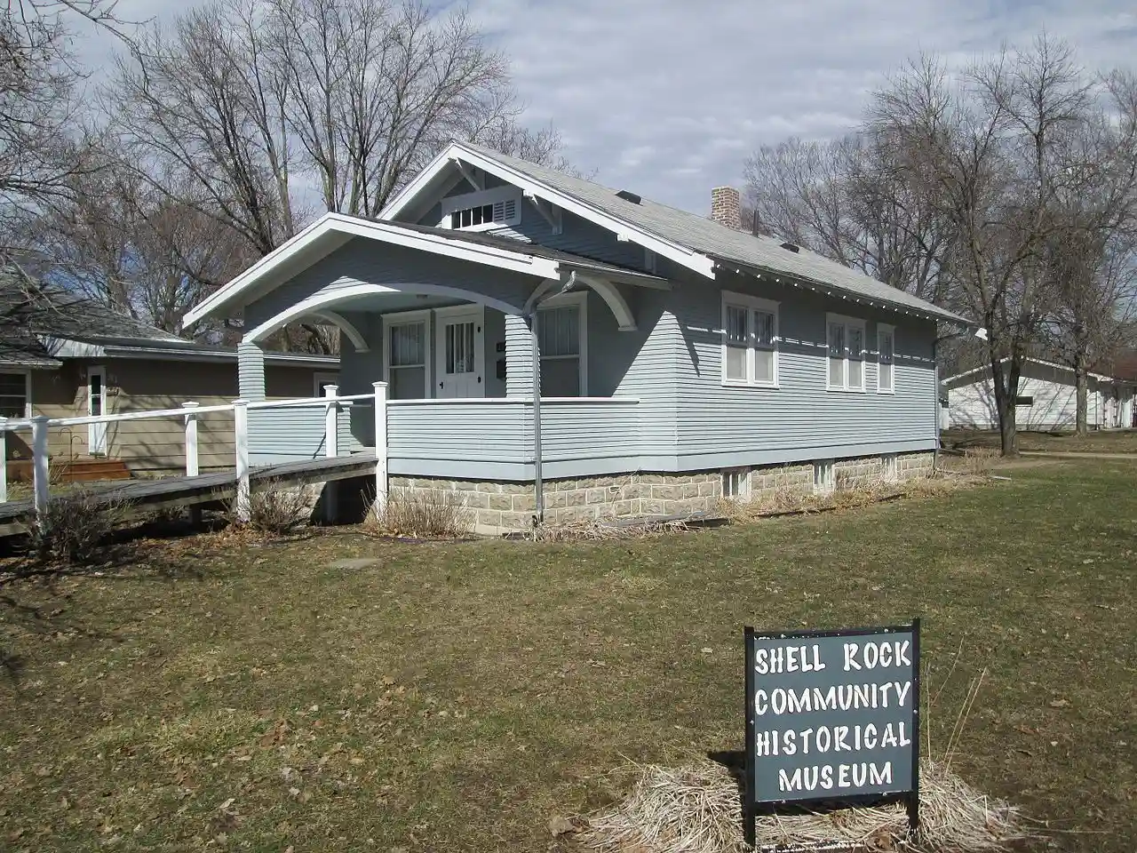 The Charles H. & Theresa H. McBride Bungalow is a historic building located in Shell Rock, Iowa, United States. While there are numerous examples American Craftsman residential architecture in town, there are few bungalows. This is the only example in town of the bungalow subtype that features a rectangular plan with a gable front and a separate gable front porch. It is also rare for a bungalow, in general, to have a matching garage and even rarer to have a matching concrete block foundation as this house and garage. The house's original location was on a flood plain and it was in danger of being torn down. It was acquired by the Shell Rock Community Historical Society and moved to its present location in 2006. It opened as the society's museum the following year. The house and garage were listed together on the National Register of Historic Places in 2011. Read more on Wikipedia