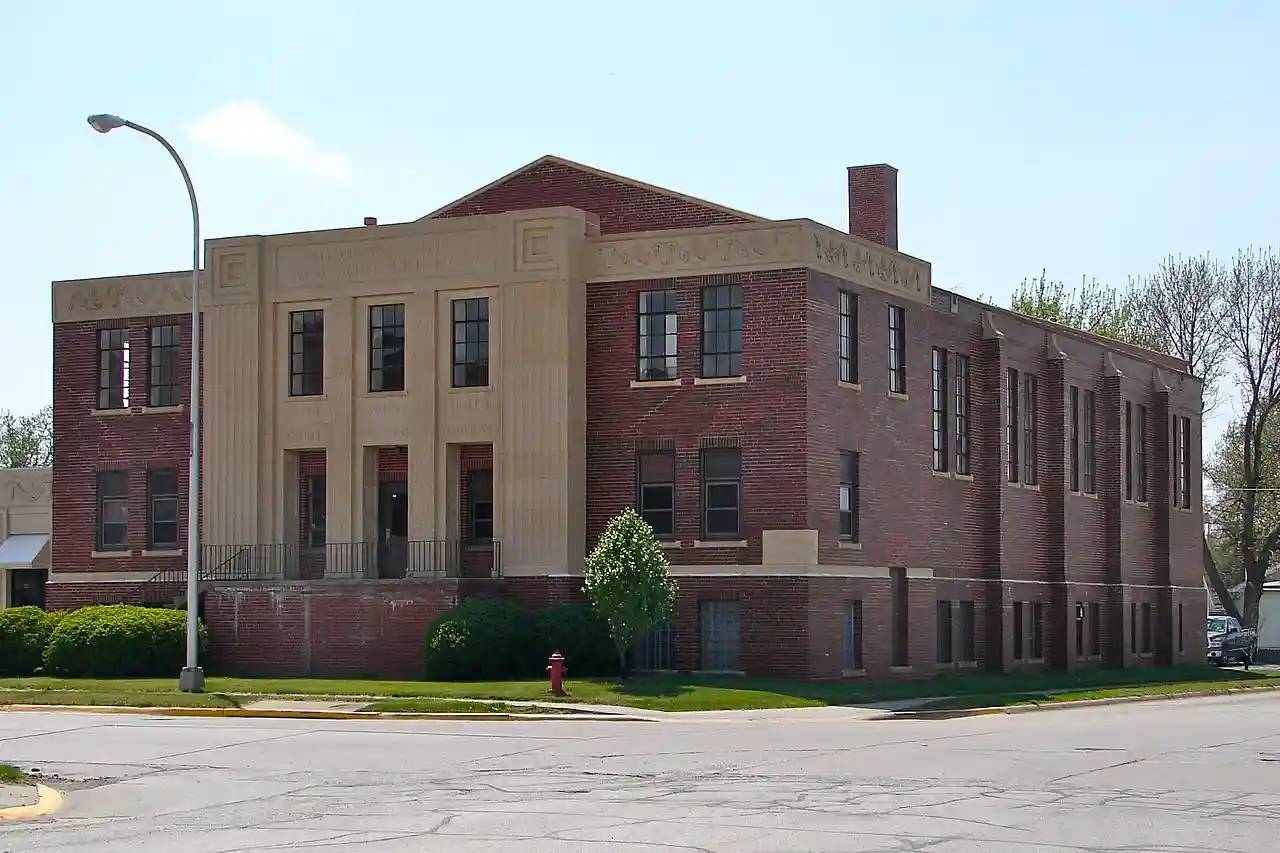 The American Legion Memorial Building, also known as Atlantic National Guard Armory, at 201 Poplar Street in Atlantic, Iowa was built in 1939. It was listed on the National Register of Historic Places in 2006. Designed by Council Bluffs architect George A. Spooner, it includes Moderne and Art Deco architecture. It was built by G.F. Construction Company of Exira, Iowa. The building served historically for arms storage, as a military facility, as a meeting hall, and as a sport facility. Read more on Wikipedia