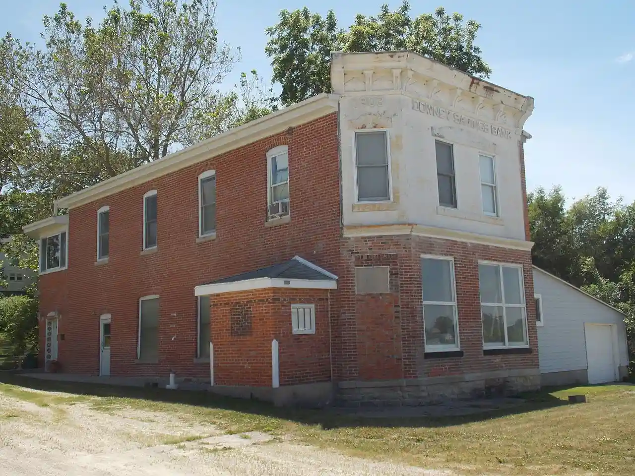 Downey Savings Bank is a historic building located in the unincorporated community of Downey, Iowa, United States. The bank was charted and this building was constructed in 1903. The two-story, brick building is an example of an early twentieth century commercial bank building. with At the time it was built the town had several other businesses. The bank continued in operation until 1932 when it was closed during the National Banking Holiday. Because its capital was not large enough to meet the new federal banking regulations it was consolidated with the West Liberty Bank. John Bashor opened a grocery-hardware store in the building in 1935, and operated it here until 1961. The building housed a grocery store from 1961 to 1972. After an attempt to convert it into a pool hall and cabinet shop, it became a pottery in the mid 1970s. The building was listed on the National Register of Historic Places in 1976. Read more on Wikipedia