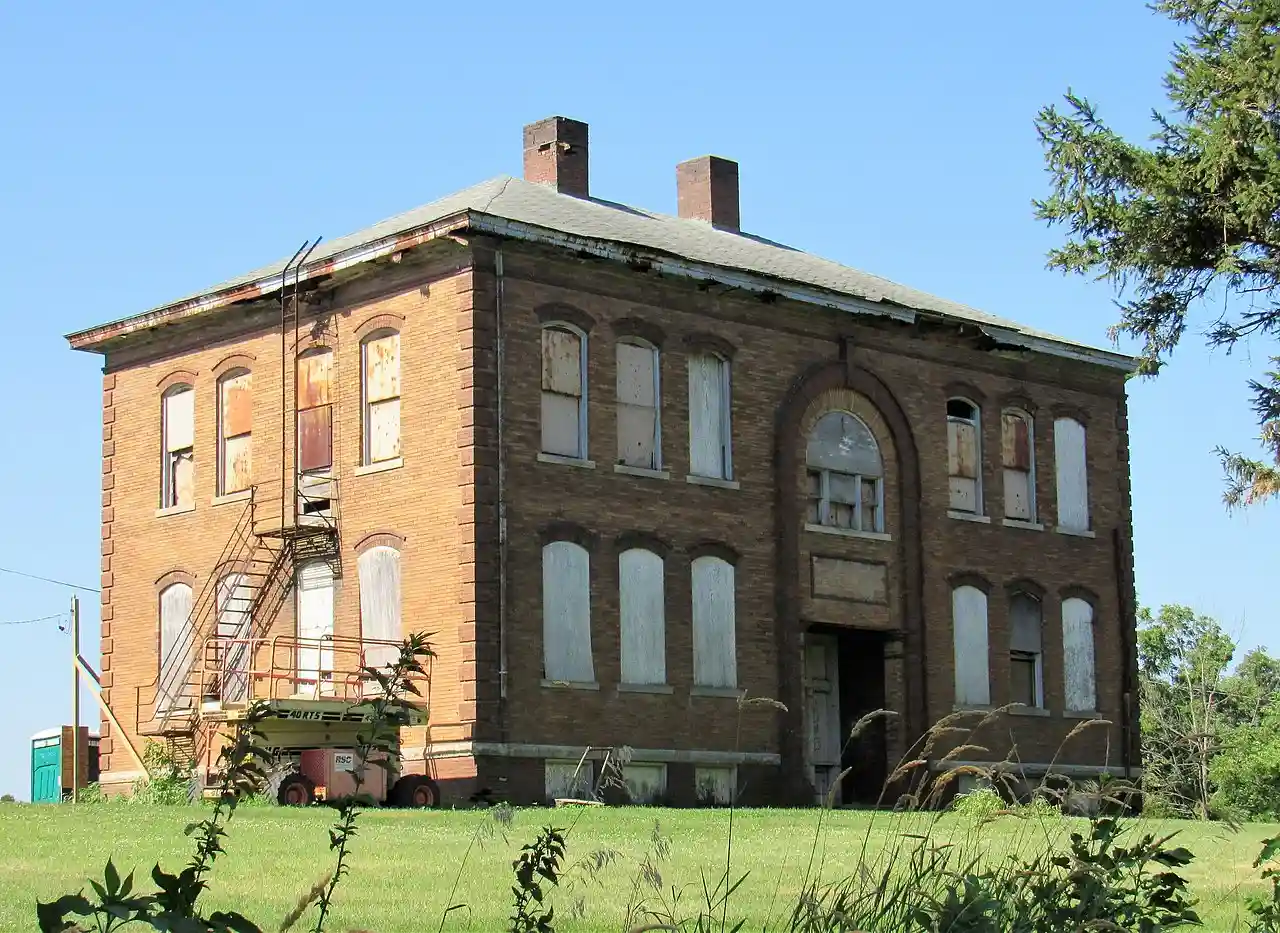Downey School is a historic building located in the unincorporated community of Downey, Iowa, United States. Built in four months in 1905, it was designed by Waterloo, Iowa architect J.G. Ralston and built by Frank Chapman, also of Waterloo. The two-story brick structure features quoins on the corners and Roman arches as its main decorative elements. The building had a cupola, but that was taken down at some point. It is believed that the building originally housed 1st through 12th grades. After 20 years the high school grades were moved to West Branch, Iowa. The school itself closed in 1955. The Wapsie Valley Grange Society acquired the building and they used it for their meetings into the 1970s. Read more on Wikipedia