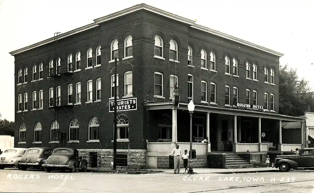 The Elks-Rogers Hotel, also known as Park Hotel of Clear Lake, was a resort hotel in Clear Lake, Iowa built in 1901. It was "a classic piece of late Victorian architecture often found in the trans-Mississippi West." It had brick walls (made of soft brick of the area), fan windows, and a large porch with Doric columns. with Read more on Wikipedia