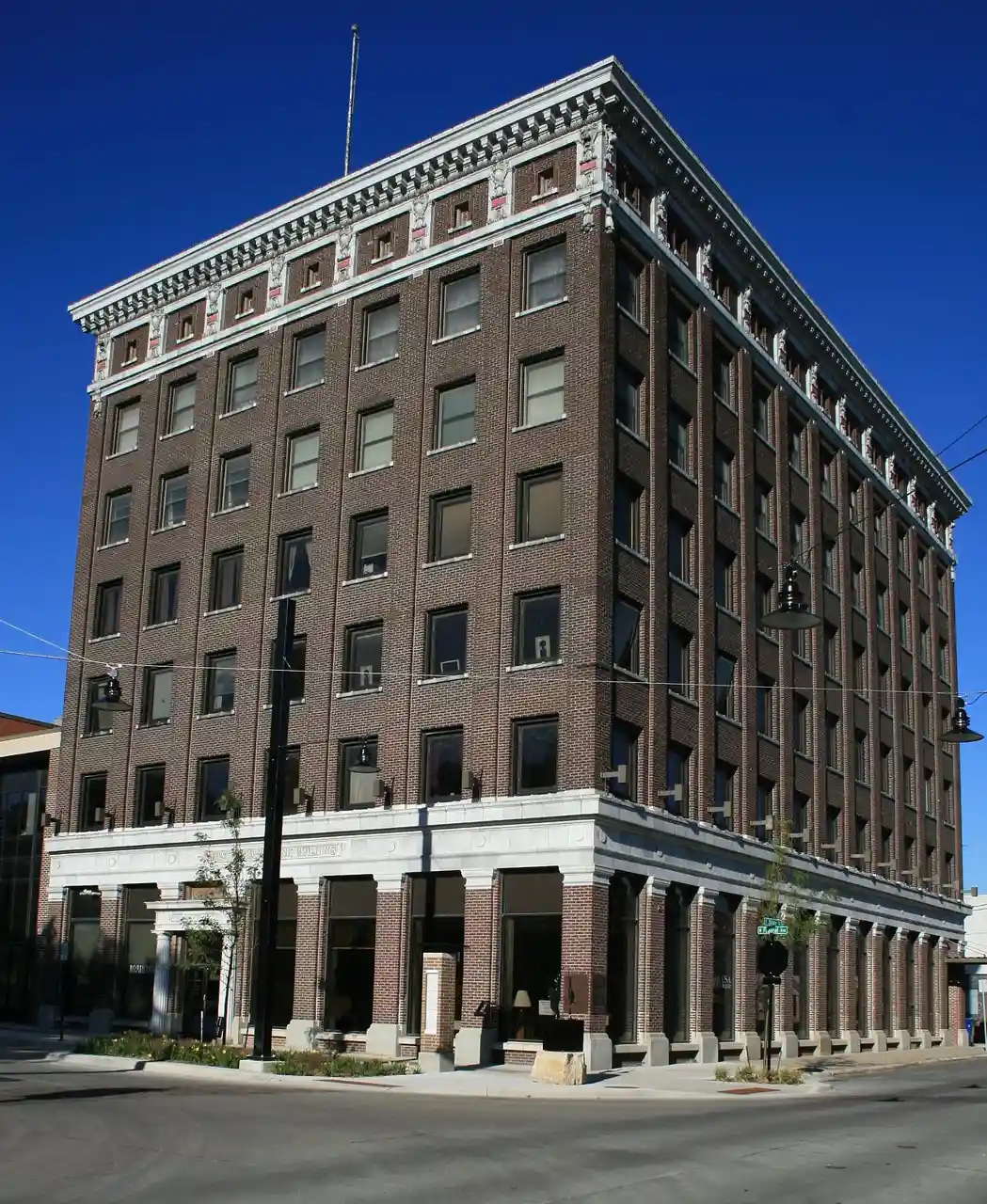 The First National Bank of Mason City, also known as Norwest Bank Building and City Center of Mason City, is a historic building located in Mason City, Iowa, United States. It was designed by the Des Moines architectural firm of Liebbe, Nourse & Rasmussen, and it was the only Mason City commission for this firm. with Completed in 1911, it was constructed by C.E. Atkinson of Webster City, Iowa who had built several other H.F. Liebbe designs. The 6½-story building follows the Early Commercial style. It features modestly decorated main floor and attic level with five floors of rather plain brick construction in between. The bank occupied most of the first floor and some of the office space above, while the other office space was taken up by professional offices. By the 1960s the bank occupied the whole building. John Dillinger, Baby Face Nelson, John Hamilton and Tommy Carroll robbed the bank on March 13,1934 and stole about $50,000. Dillinger was wounded in an exchange of gunfire during the heist. The building to the north of the bank was torn down in 1982 and a two-story annex to the bank replaced it. The bank building was individually listed on the National Register of Historic Places in 1997, and as a contributing property in the Mason City Downtown Historic District in 2005. with City Center of Mason City Inc. bought the building in 1995, and remodeled it into apartments and offices. Read more on Wikipedia