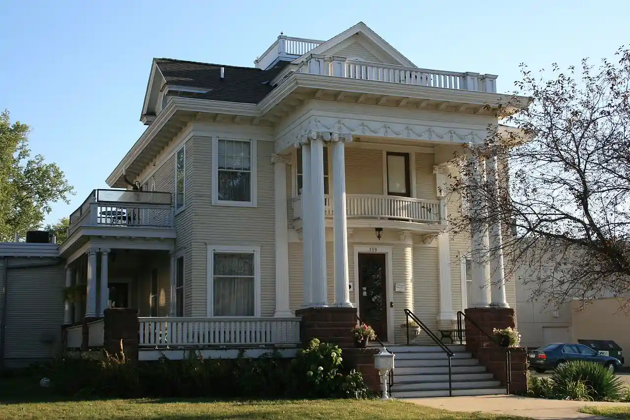 The Keerl–Decker House is a historic building located in Mason City, Iowa, United States. It was designed by local architect E.R. Bogardus, and completed in 1902. The two-story frame structure features a full height front porch with Ionic columns. There is also a similar single-story side porch. The house is capped with a hip roof with dormers, and a denticulated cornice with modillions. It was built for Irving Keerl, who served as Clerk of Courts for Cerro Gordo County, and he was one of the organizers of the Iowa State Bank of Mason City. The house is also associated with the Decker family who owned it from 1919 to 1965. They operated the Decker Meat Packing Plant, which is now operated by ConAgra Foods. with The house was converted into a restaurant in the 1970s. It was at that time that an addition to house a commercial kitchen was built. The house has subsequently been converted into a bed and breakfast. It was listed on the National Register of Historic Places in 2002. Read more on Wikipedia