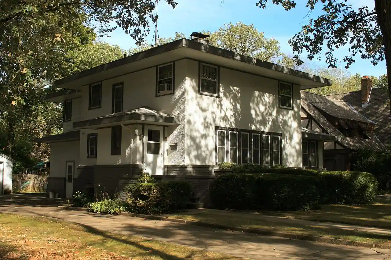 The Tessa Youngblood House is a historic building located in Mason City, Iowa, United States. Completed in 1922, the house is attributed to local contractor John Taylor. with The two-story structure features a stuccoed exterior above a brick base, and a heavy roof design with a deep fascia. The attached garage in the back was converted into a room in 1958, and at the same time the second story room above it was added. A detached garage was built the same year. The house was listed on the National Register of Historic Places in 1980. In 2015 the house and the garage were included as contributing properties in the Forest Park Historic District. Read more on Wikipedia