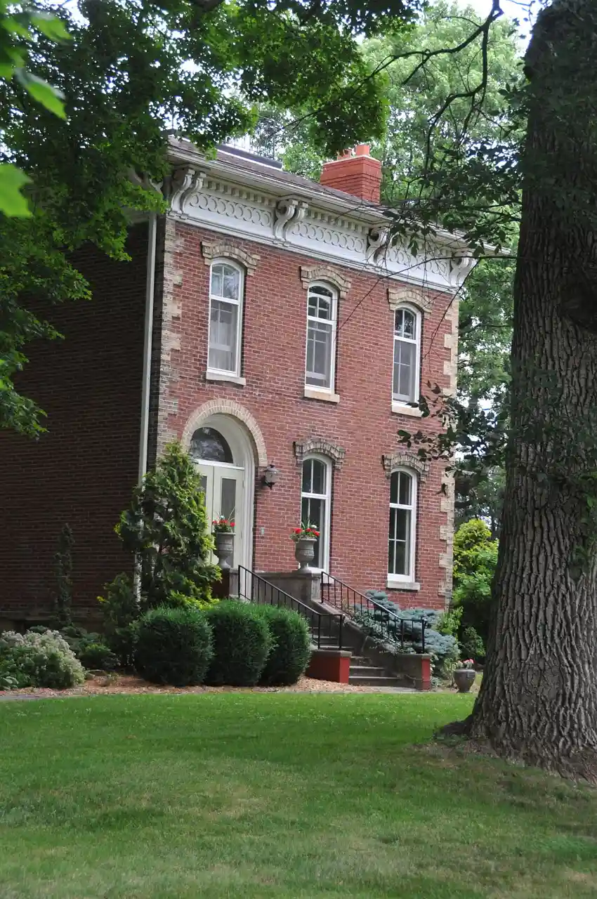 Cherry Bank, also known as the Dr. A. L. Ankeny House and Lindmeier ("Cherrybank"), is an historic residence located in Clinton, Iowa, United States. The Italianate style house was built in 1871 by Dennis Warren. He meant the house for his favorite nephew, but Dr. Ankeny bought and lived in the house instead. The two-story structure is composed of red brick and has buff-colored brick for the quoins and the window arches. It features a cornice, hipped roof, and a widow's walk. The original front porch was removed in the 1920s. It was listed on the National Register of Historic Places in 1999. Read more on Wikipedia