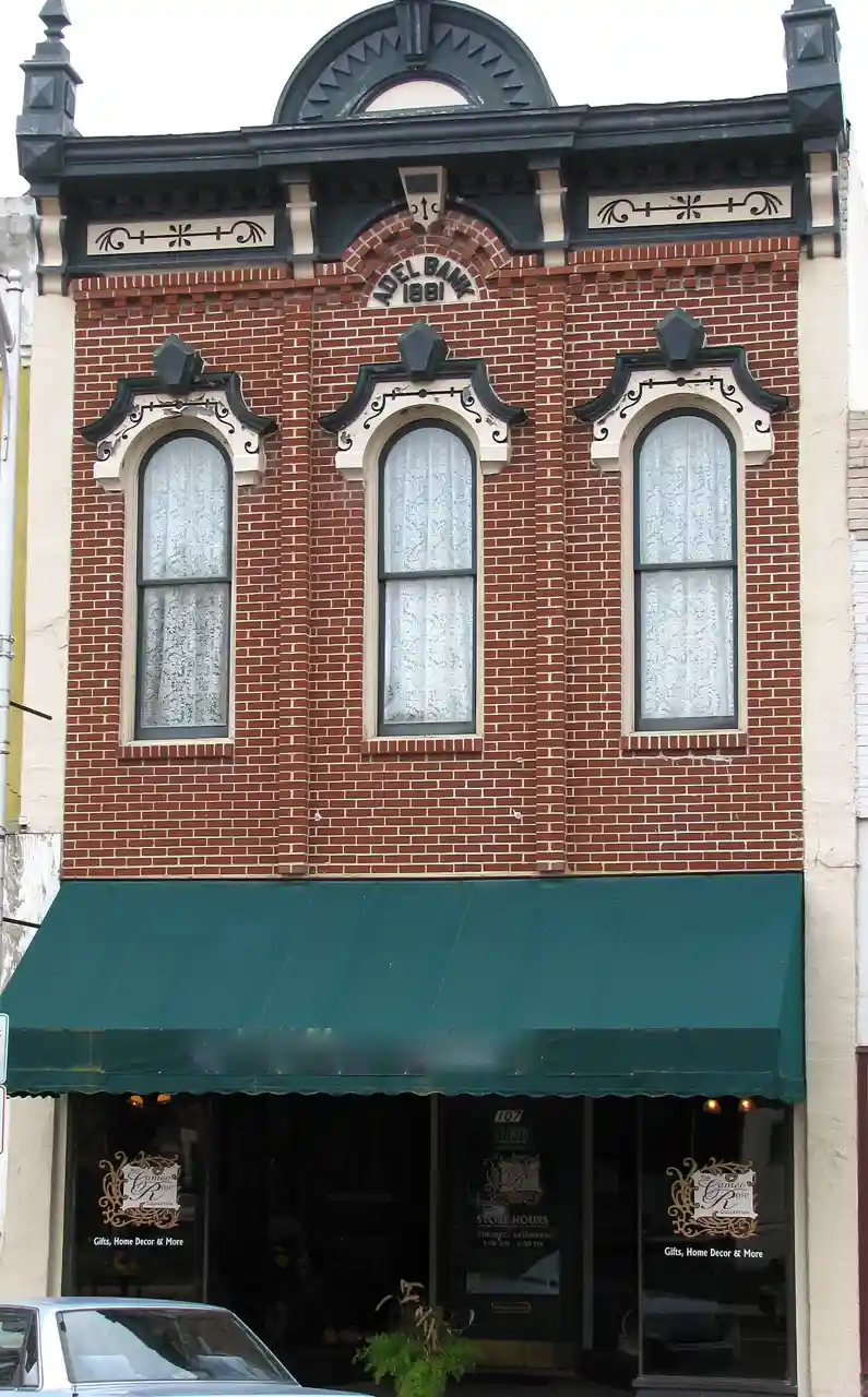 The Adel Public Square Historic District, also known as The Square, is a nationally recognized historic district located in Adel, Iowa, United States. It was listed on the National Register of Historic Places in 2009. At the time of its nomination it contained 45 resources, which included 35 contributing buildings, one contributing structure, and nine non-contributing buildings. with Adel was platted in 1847 as the county seat for Dallas County. The population of the town expanded in the late 19th and early 20th centuries, and the central business district expanded because of it. It reached its largest size in 1917 with some redevelopment occurring on the east side of the square after World War II. Read more on Wikipedia