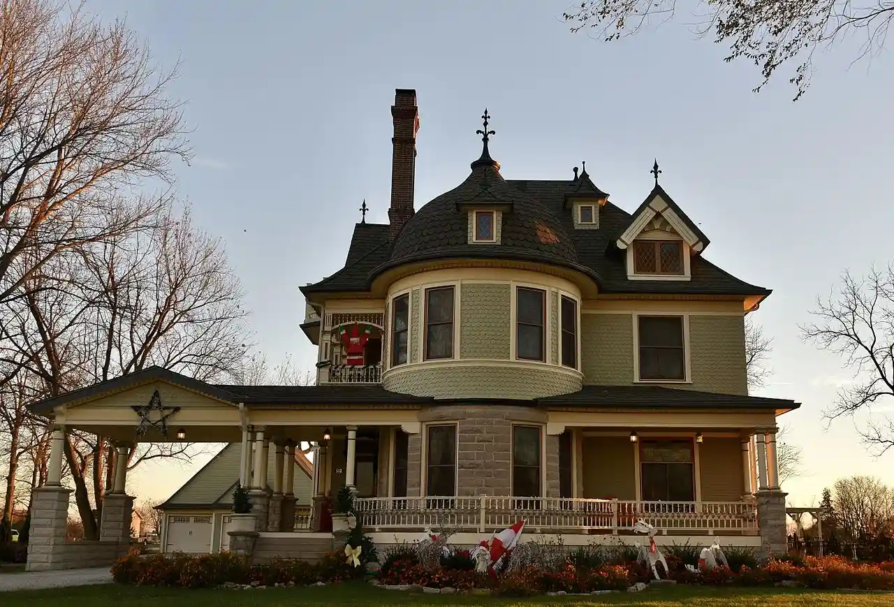 The C.S. Stearns House is a historic structure located in Garden Grove, Iowa, United States. Stearns was a local merchant and banker who was involved with C.S. Stearns & Bros. and the First National Bank. The house is an example of the vernacular Queen Anne style that was popular among the prominent citizens of Iowa's small towns toward the end of the 19th century. It features an irregular plan, a cluttered roofscape, a variety of surface textures, tall chimneys with decorative brickwork, and a prominent semicircular bay on the main facade. The house was added to the National Register of Historic Places in 1978. Read more on Wikipedia