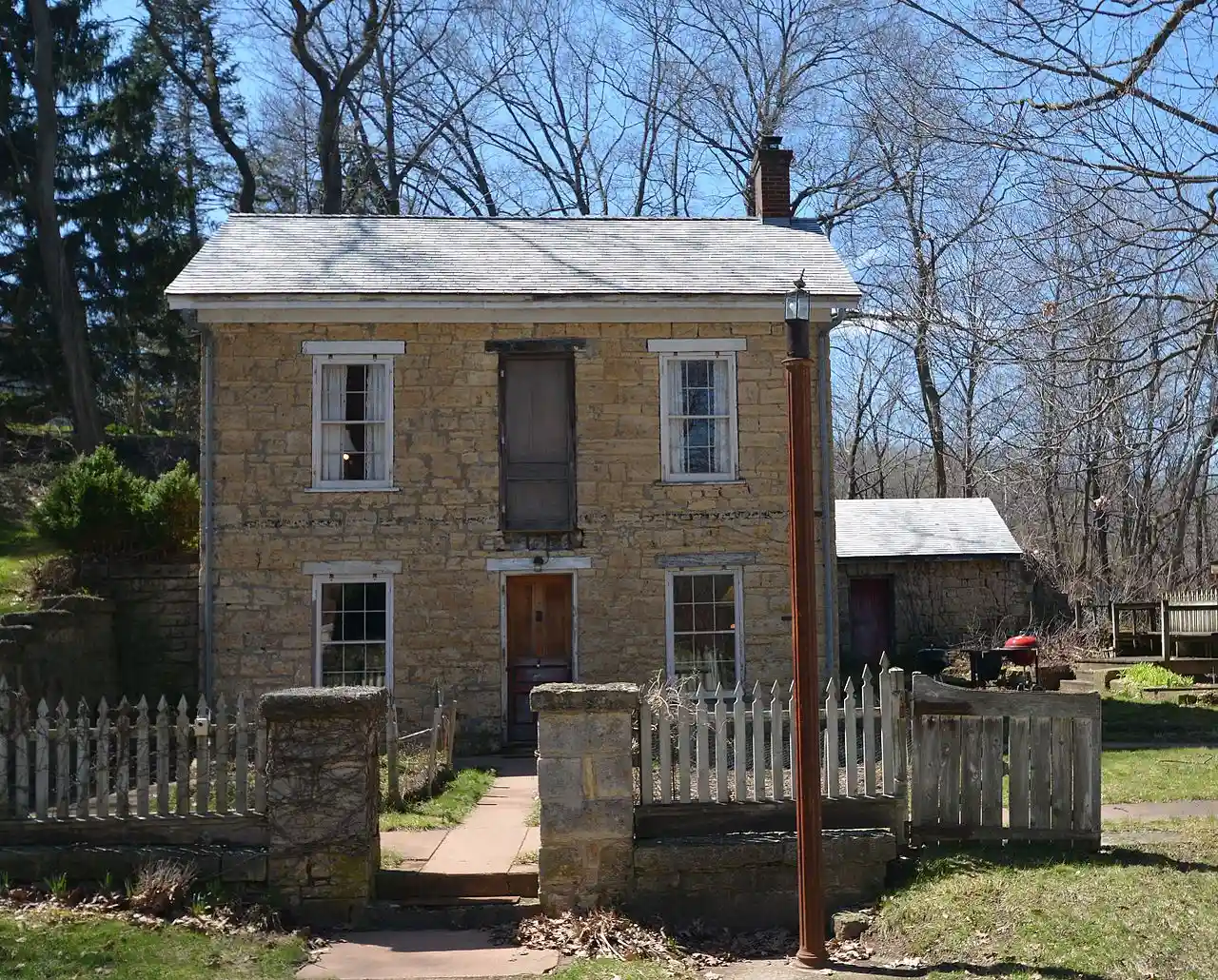 The McMahon House is a historic building located in Dubuque, Iowa, United States. This two-story stone structure was built by Ross McMahon, a master stonemason, in 1861. It is a good example of early vernacular architecture. with There are no windows on the north and west elevations given that the house is built into the side of a hill. The original porch, and its replacement, have both been removed. McMahon did the stonework on several churches and road bridges in the area during the mid to late 19th century. He also had an interest in lead mining, and there are mine shafts on the neighboring property, which had been owned by his son. The house was listed on the National Register of Historic Places in 1976. Read more on Wikipedia