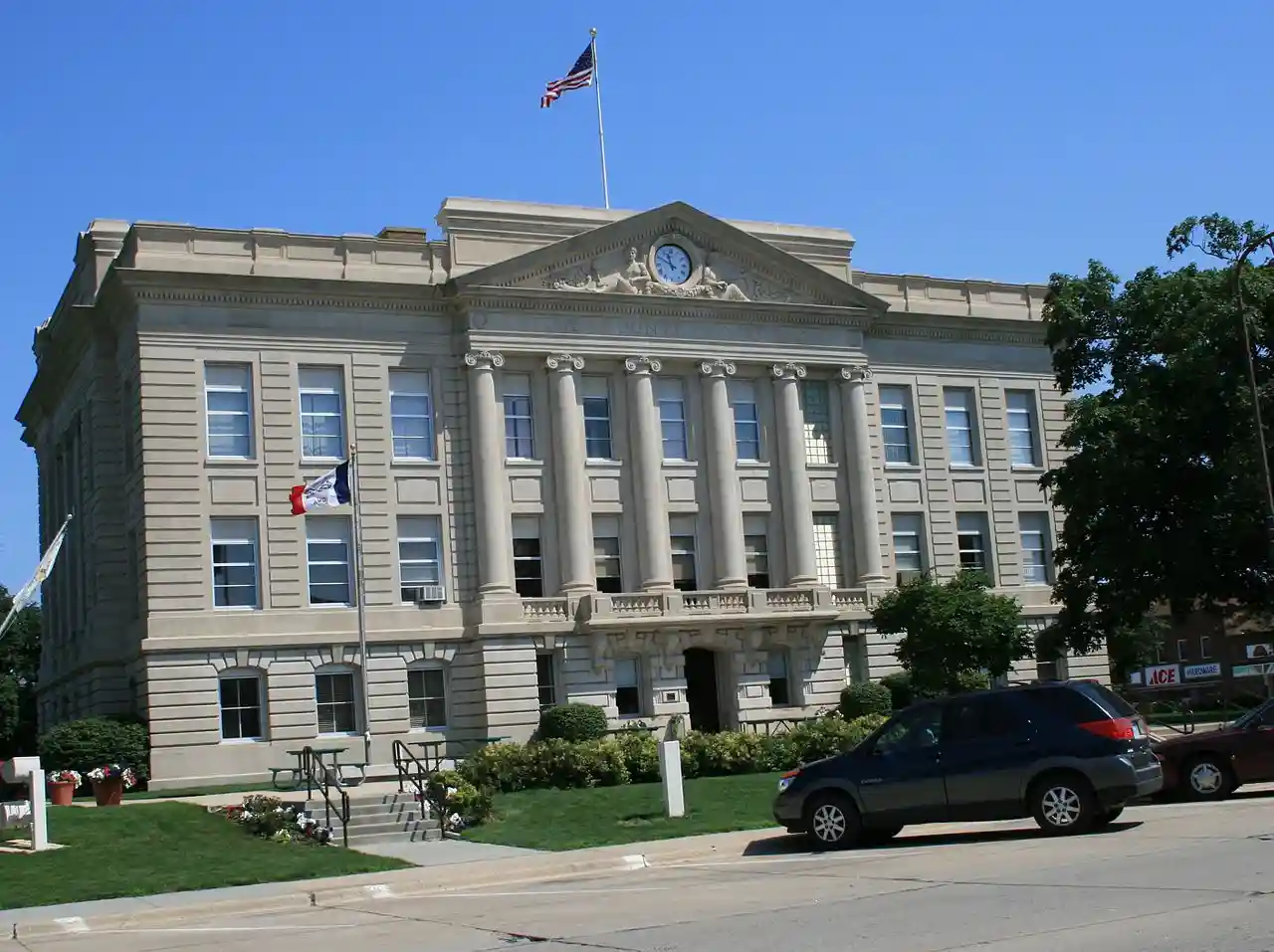 The Greene County Courthouse, located in Jefferson, Iowa, United States, was built in 1918. It was individually listed on the National Register of Historic Places in 1978 as a part of the County Courthouses in Iowa Thematic Resource. In 2011, it was included as a contributing property in the Jefferson Square Commercial Historic District. The courthouse is the third structure to house court functions and county administration. The courthouse features the Mahany Tower, a 120 feet bell tower. Read more on Wikipedia