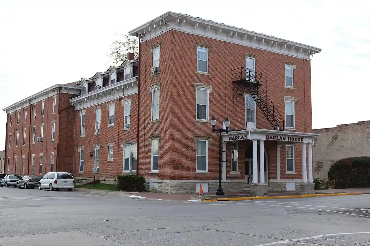 The Harlan House Hotel is a historic building located in Mount Pleasant, Iowa, United States. It is associated with James Harlan, the first Republican to represent Iowa in the United States Senate (1855-1865, 1867–1872). with He was also Secretary of the Interior (1865-1867). His daughter Mary was the wife of Robert Todd Lincoln, President Abraham Lincoln's only surviving son. Harlan built the oldest part of this building as his house in 1857. After his career as a Senator, he could no longer afford the house and bought another house in Mount Pleasant. Harlan built the first addition onto his old house and converted it into a hotel so he could support himself. He added onto the hotel two more times, c. 1880 and 1892. The first two additions are on the alley side of the building, and the third addition faces Jefferson Street. The middle section of the building with the bracketed cornice and mansard roof is the original house. Harlan moved into the hotel in the early 1890s and died here in 1899. A few minor alterations were made to the building in the 20th century. It was listed on the National Register of Historic Places in 1987. Read more on Wikipedia