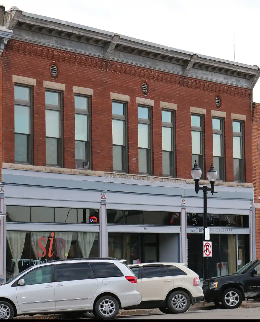 The Louisa Building is a historic building located in Mount Pleasant, Iowa, United States. Completed in 1901, this two story, brick structure features a transitional design between the Italianate, that had been popular here, and the Neoclassical that would replace it in popularity. with It has a triple storefront with three sets of three windows on the second floor. In place of hood molds, which were typical of the Italianate, each window has a heavy rusticated stone lintel. The metal cornice across the top of the facade is simpler in its decorative elements than earlier Italianate cornices. This building replaced the Ambler Block, which had been destroyed in an 1882 fire. The lot had remained empty in the intervening years. The building was listed on the National Register of Historic Places in 1991. Read more on Wikipedia
